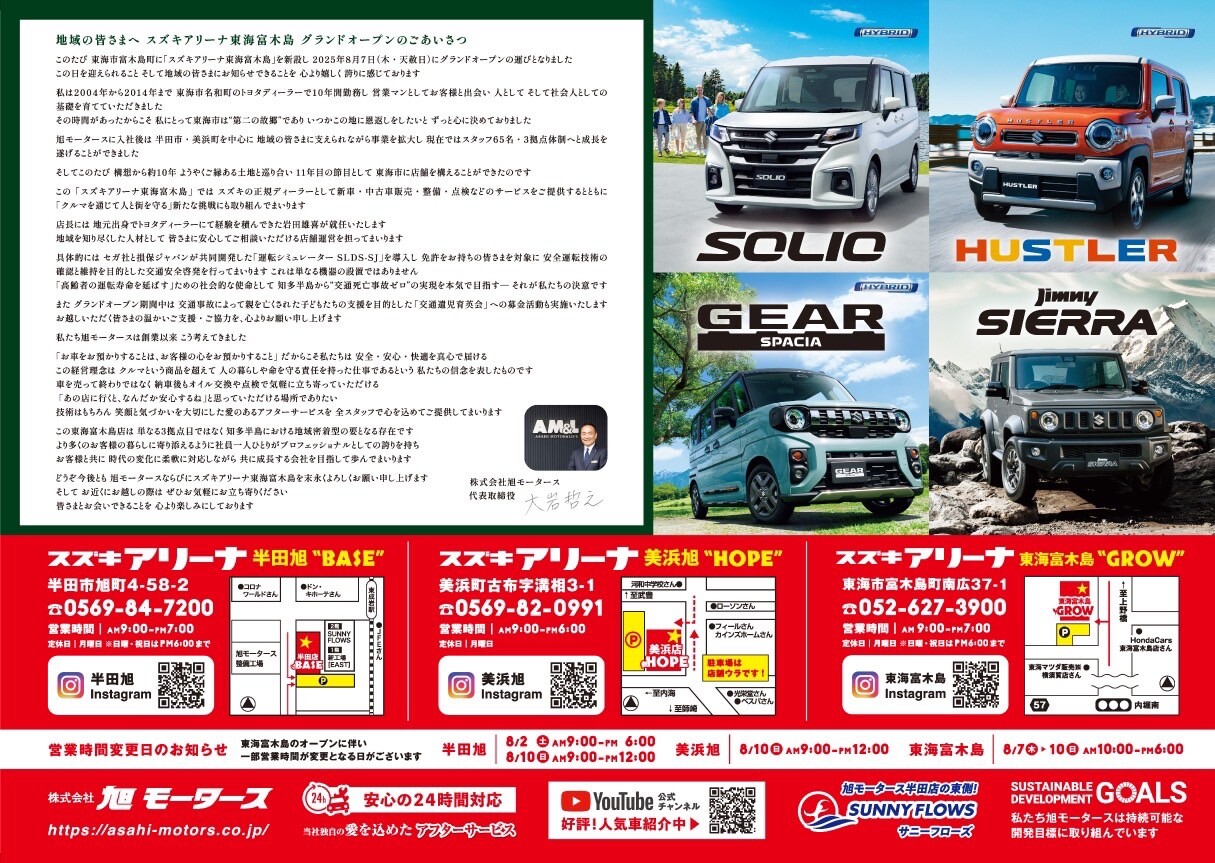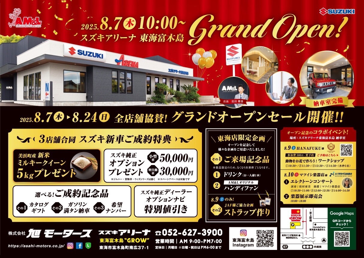2025年8月7日(木)スズキアリーナ東海富木島グランドオープンに伴い