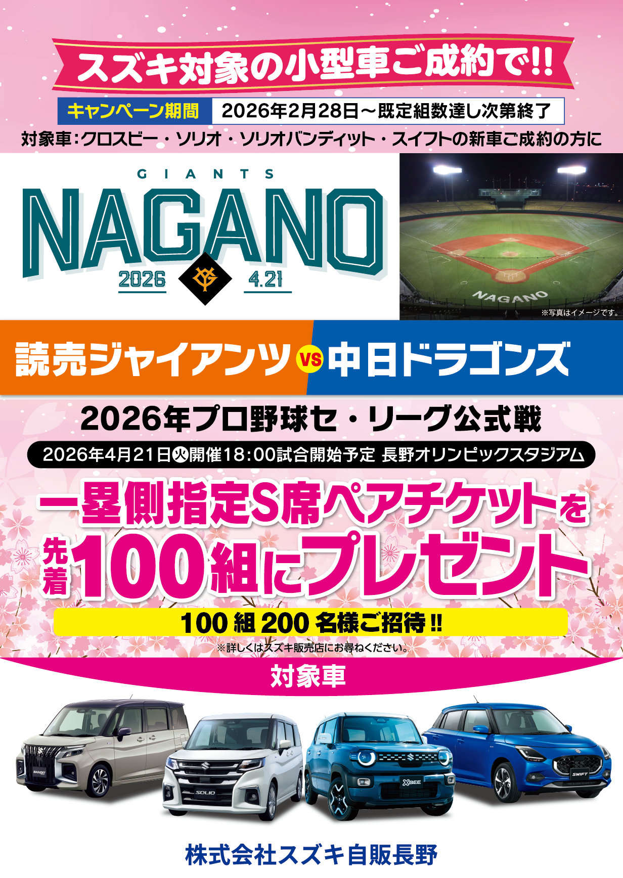 クロスビー、スイフト、ソリオシリーズの新車ご成約の方に