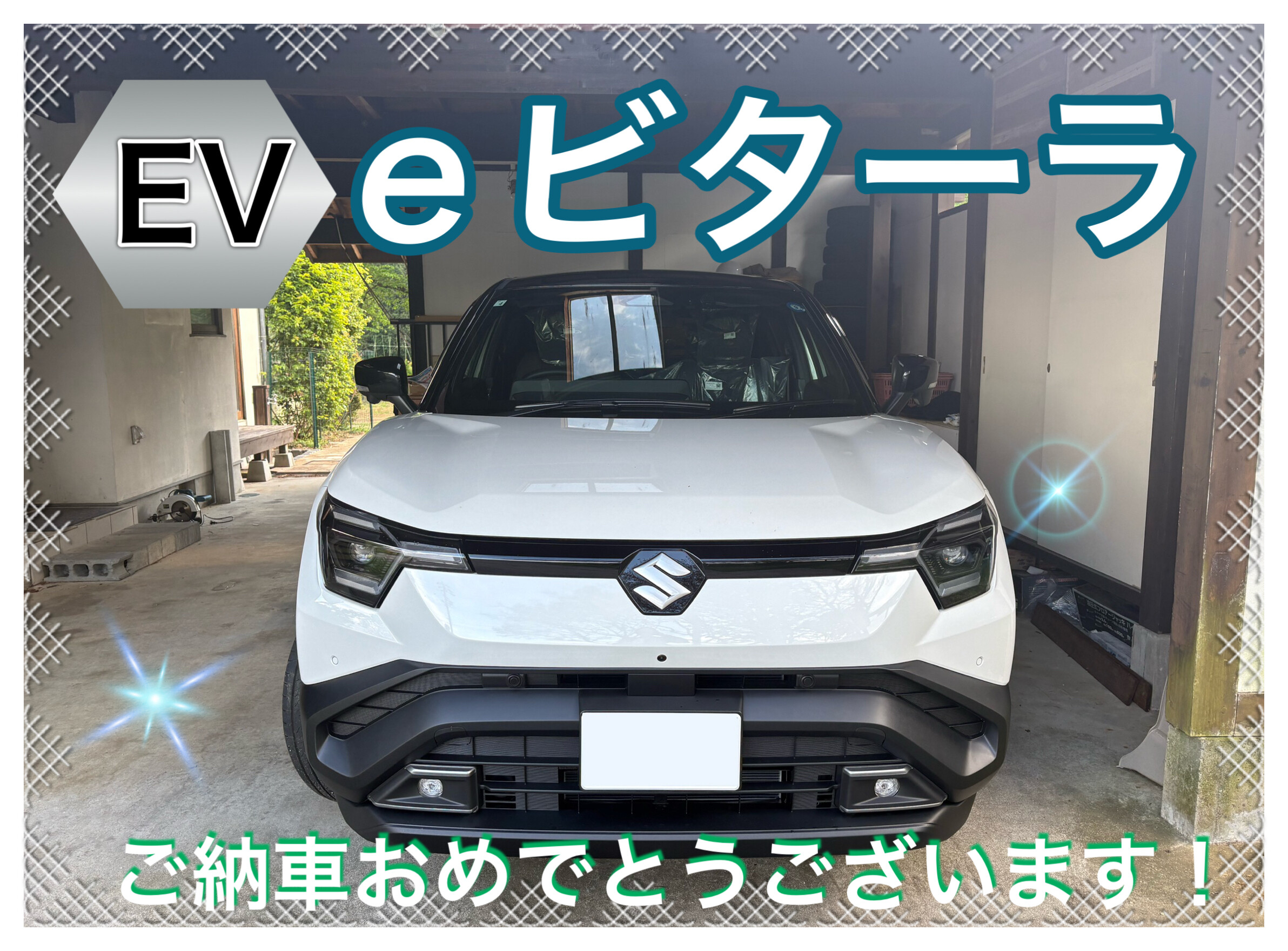納車ギャラリー 2026.04.29 eビターラご納車おめでとうございます! 愛車 e ビターラ お客様 A様様 グレード Z ボディーカラー アークティックホワイトパール ブラック2トーン A様 eビターラ ご納車おめでとうございます リーフからのお乗り換えで、 すでに電気自動車マスターのA様 これからのEVライフも、ご家族皆様で かっこいいeビターラとともにお楽しみください また今回は、ご自宅にてご納車させていただきました とても素敵なお住まいで、 温かいおもてなしまで頂戴し、誠にありがとうございました ぜひeビターラで、さまざまな場所へ お出かけを楽しんでください