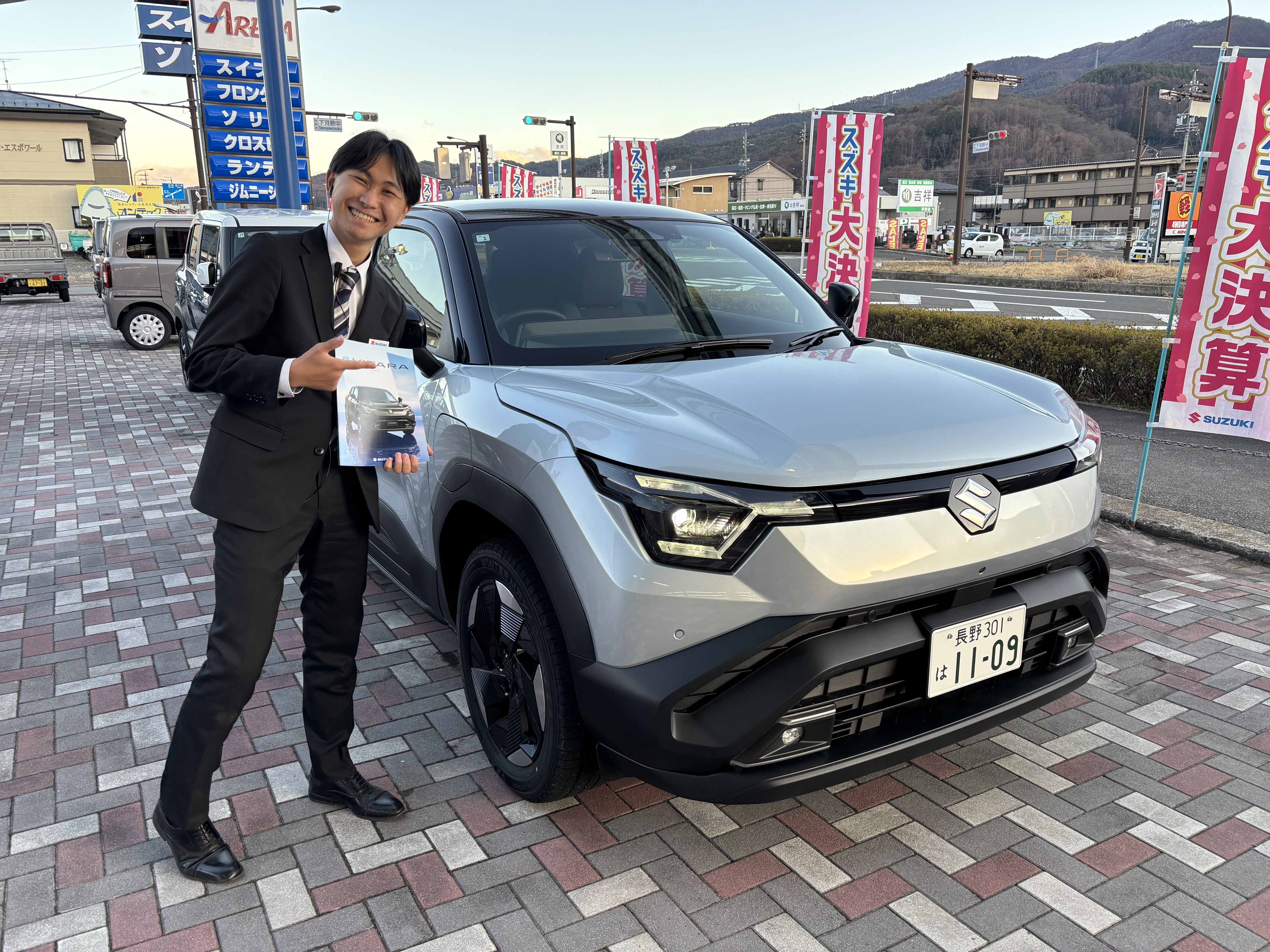 イベント/キャンペーン 2026.03.19 eビターラご試乗できます! 特報 皆さんこんにちは! 暖かくなってきたこの3連休、 なんと諏訪でeビターラをご試乗いただけます! 低重心による安定感とEVの瞬発力が掛け合わさり、 どっしりキビキビ刺激的な乗り心地。 そして搭乗者を振れさせない高級で機能的なシート...! 長野県に1台しかない貴重な試乗車です スズキ初の電気自動車、この機会にぜひご試乗ください! 期間は20日~22日まで! ぜひご来店ください!