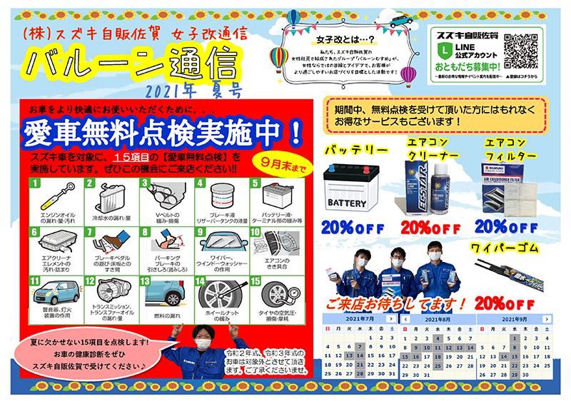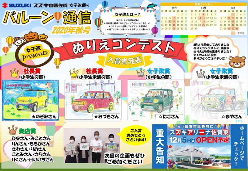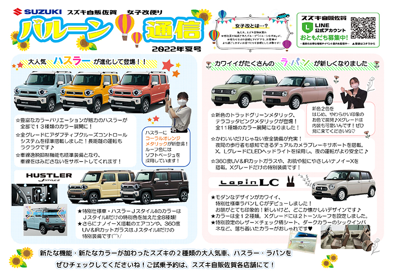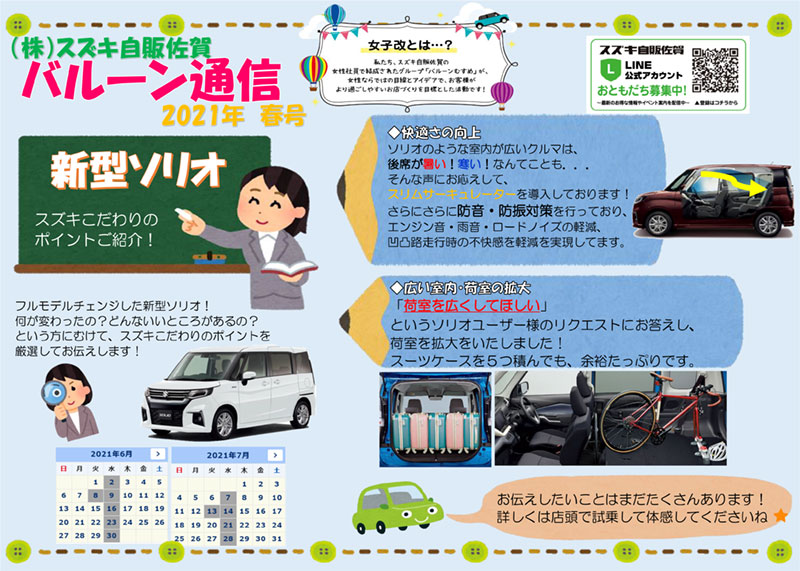 スズキ自販佐賀の女性社員で結成した女性改プロジェクトチームです!佐賀の秋の風物詩・熱気球が名前の由来です。