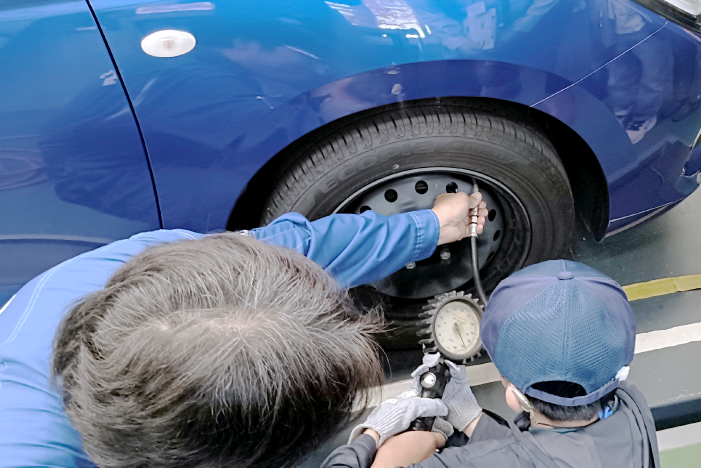ライトの点検やエンジンオイルのチェック、タイヤの空気圧測定など!