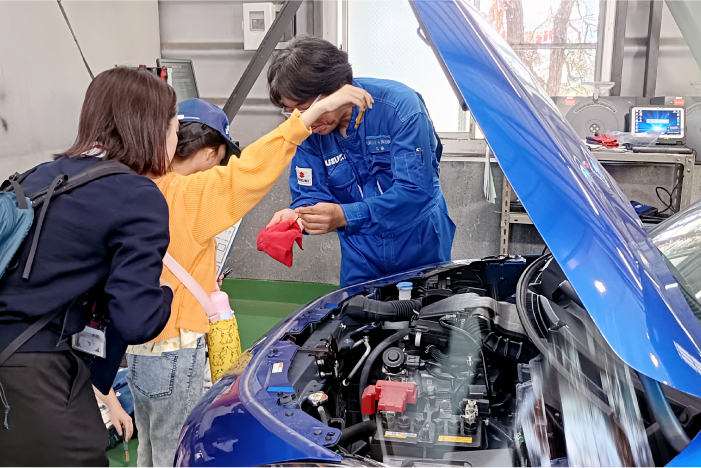 そのあとは整備工場へ移動し、車の点検を体験。