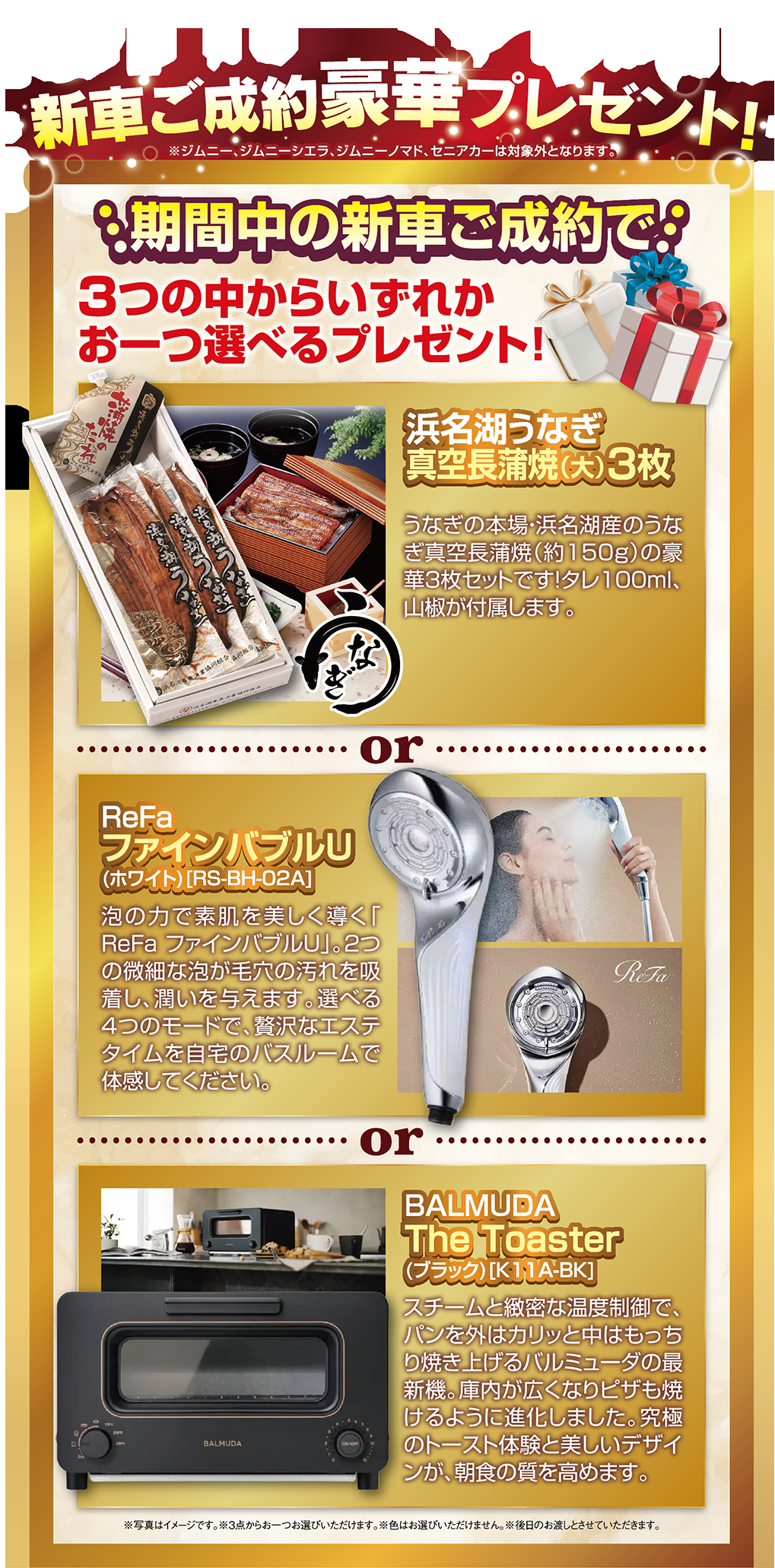 『3つの選べる豪華商品』!!