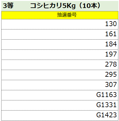 の当選番号を発表致します!