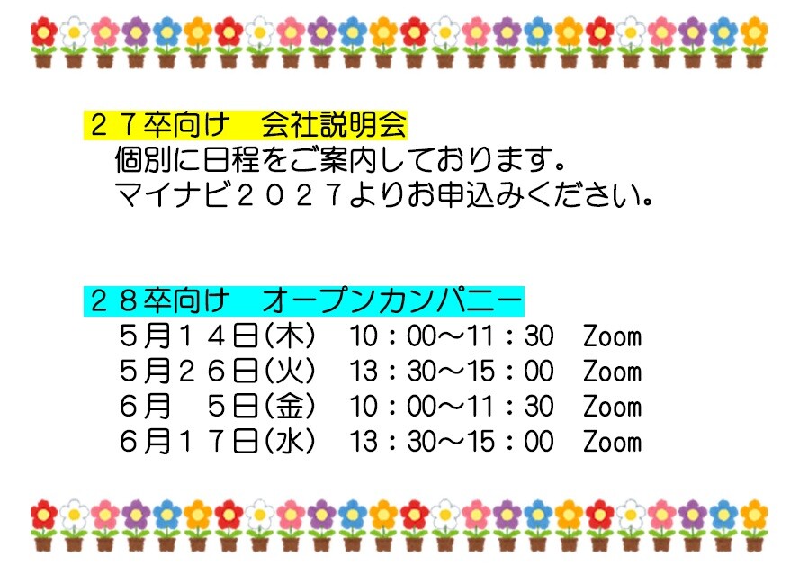 説明会等のお問い合わせに関しましては、