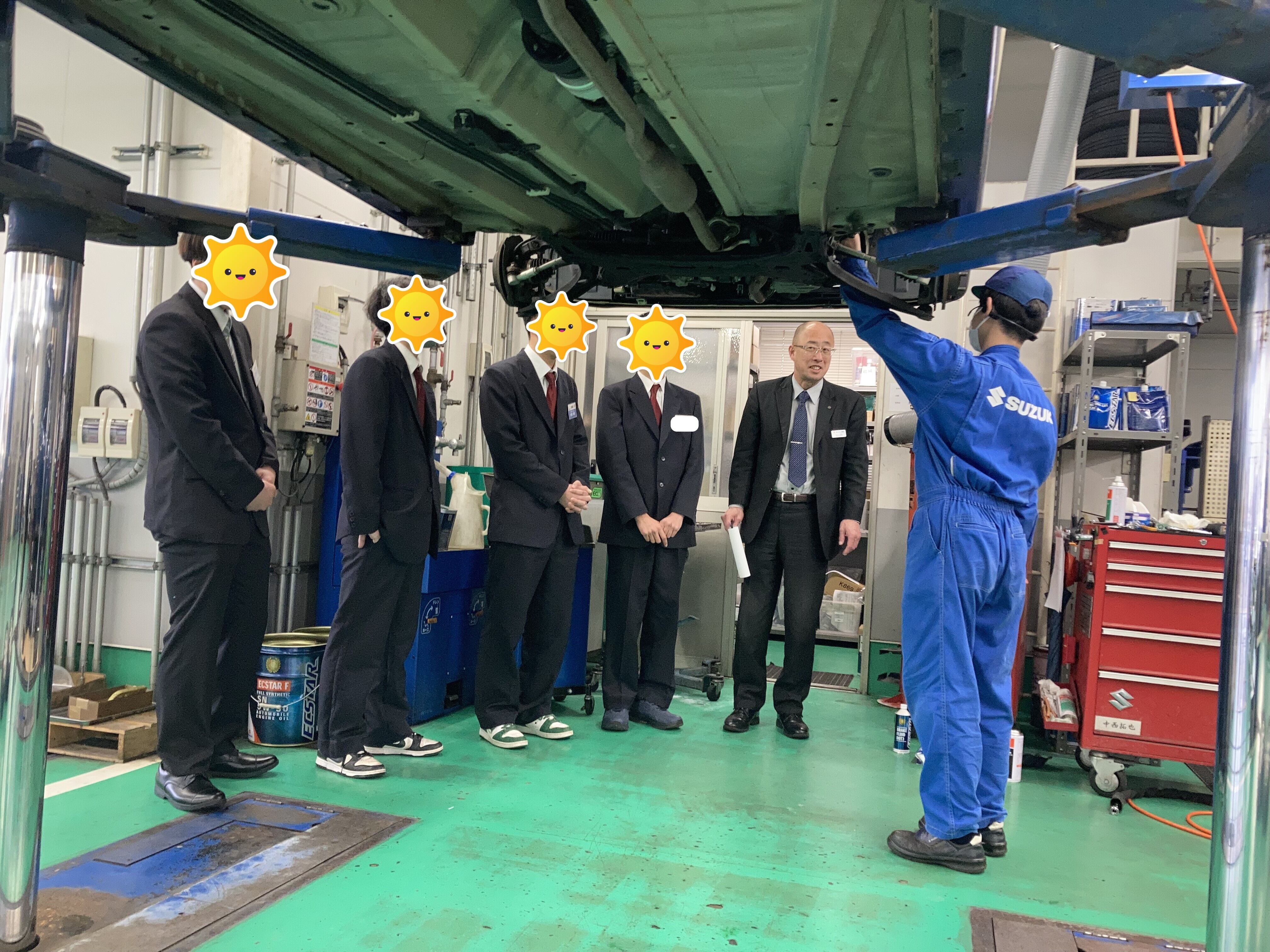 整備職として働くイメージも持ってもらう為に、ショールーム見学を行いました。