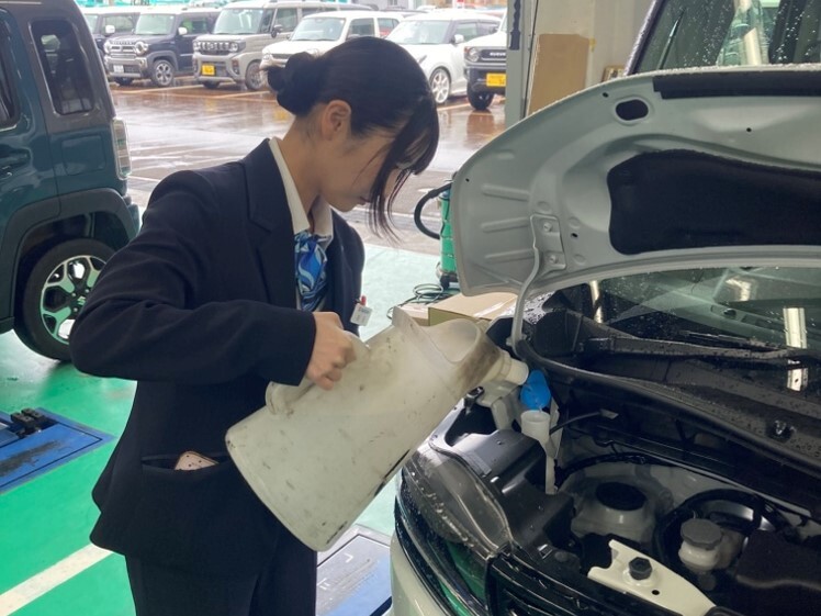 日常点検や納車準備等を行い、お客様に安心してお乗りいただくための準備の大切さを学びました。