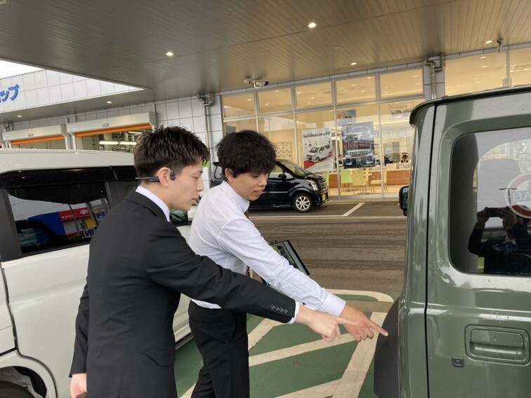先輩スタッフと一緒に直販営業の仕事について学んでいきます。査定で見るべきポイントを教わりました!