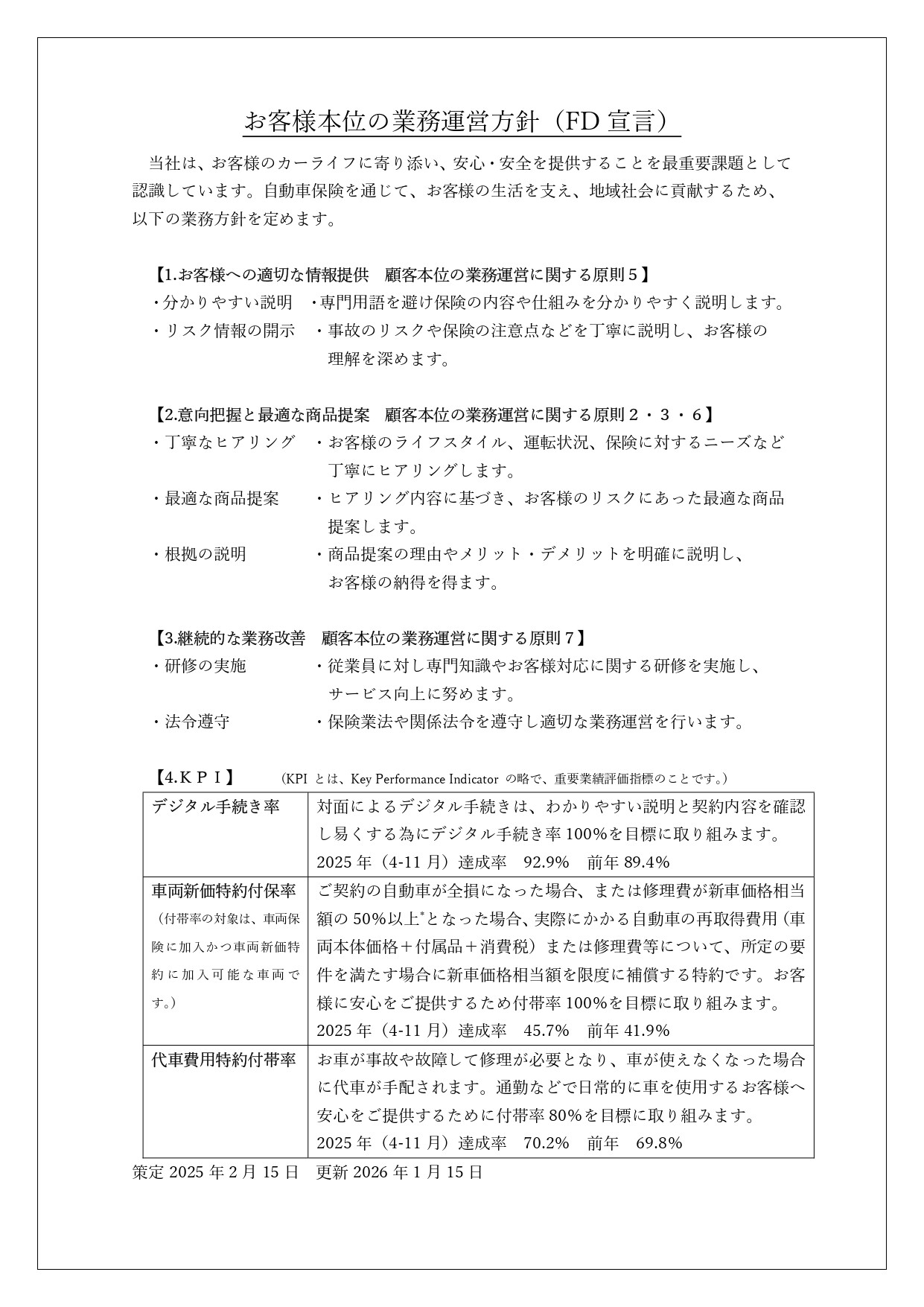 お客様本位の自動車保険業務運営方針(FD宣言)