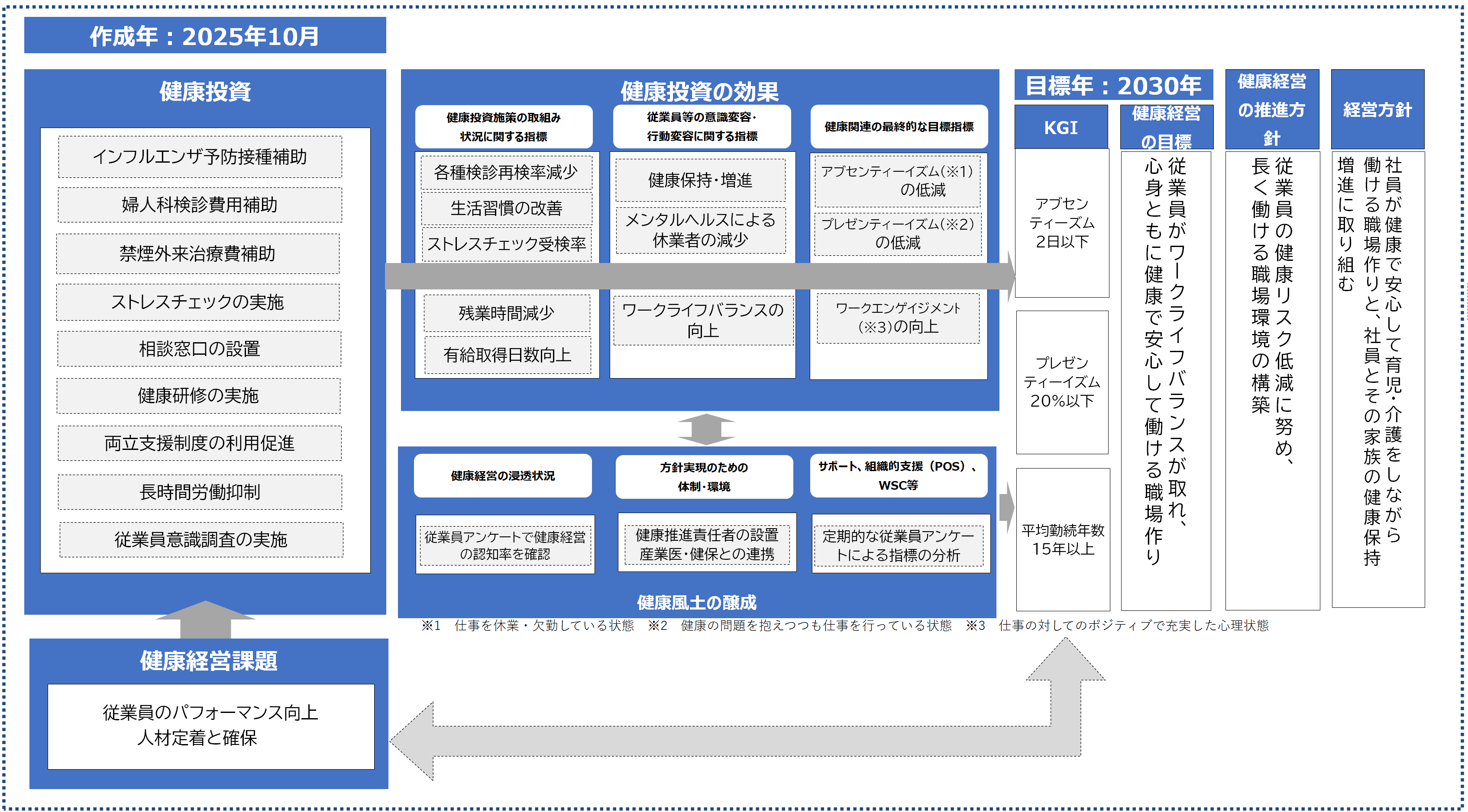 経営課題や経営課題や健康課題をすべて見える化し施策を推進しています。