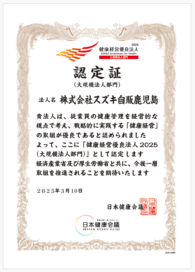 当社は、経済産業省と日本健康会議が共同で行っている認定制度「健康経営優良法人2025」に