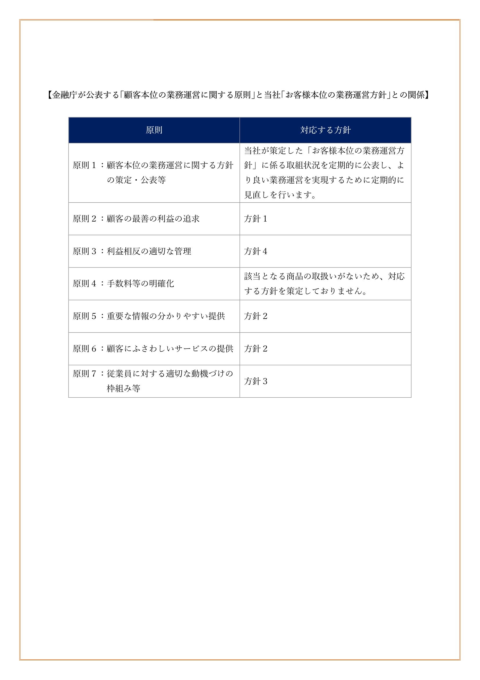 自動車保険の取扱いに関するお客様本位の業務運営方針