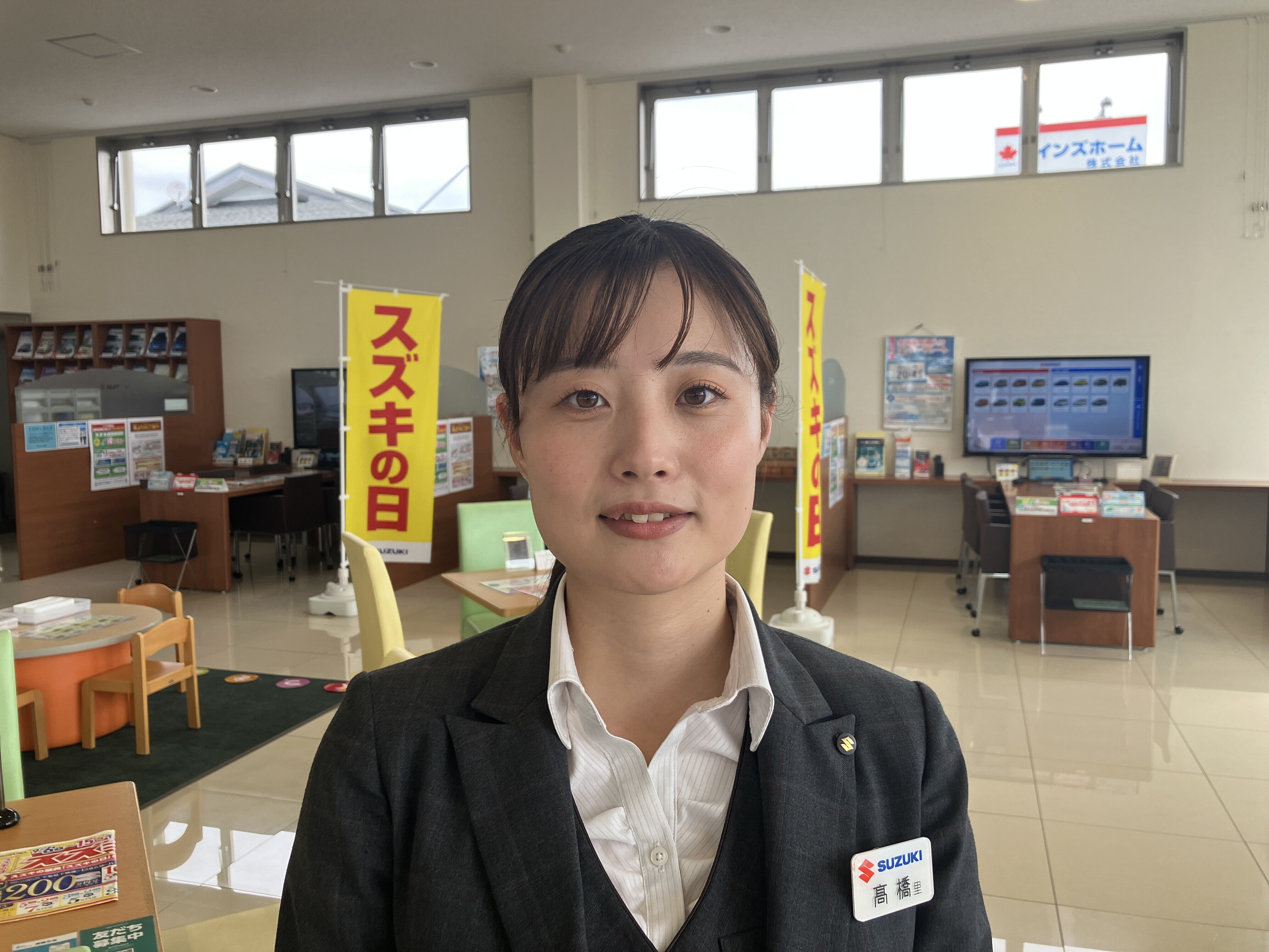 ショールームに来店されたお客様への接客、スズキ車の提案・販売などを行っています。