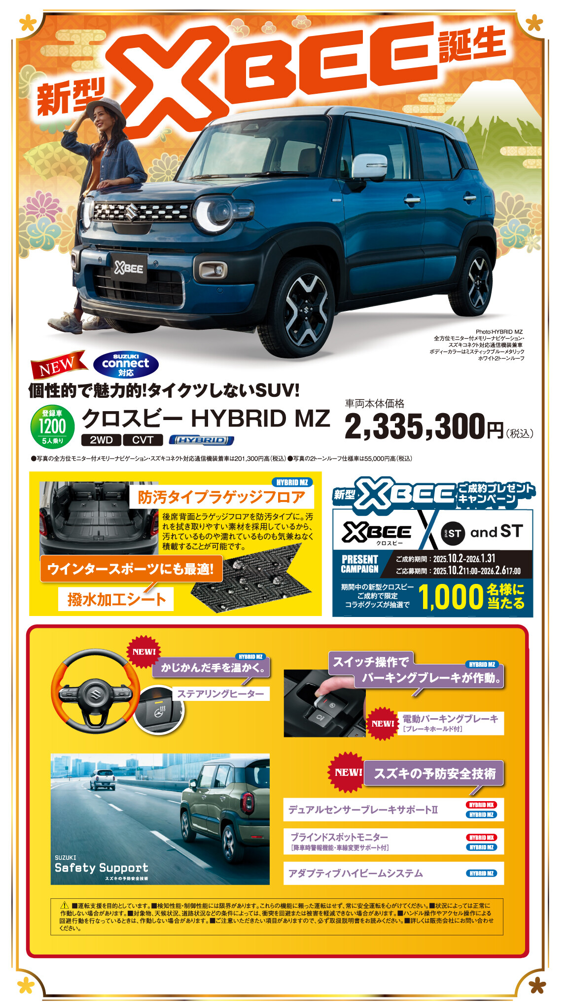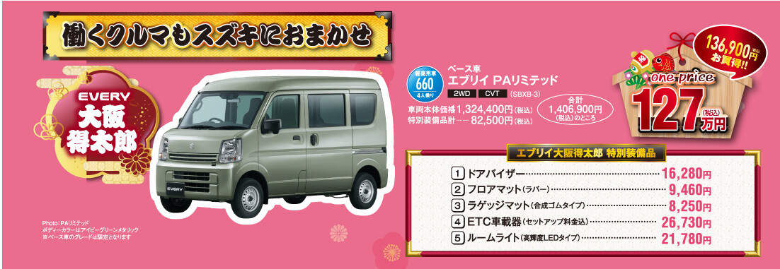 イベント/キャンペーン 2025.12.27 2026年 スズキの初売り キャンペーン期間:2026.01.04~2026.01.12 日頃よりスズキ自販近畿を ご愛顧頂きまして 誠にありがとうございます。 1月4日(日)~1月12日(月)まで スズキの初売り を開催いたします‼ 初売り限定のプレゼント,特典をご用意して 皆様のご来店をお待ちしております‼ 是非お近くのスズキ自販近畿のお店へ お越しくださいませ。 皆様のご来店をお待ちしております。