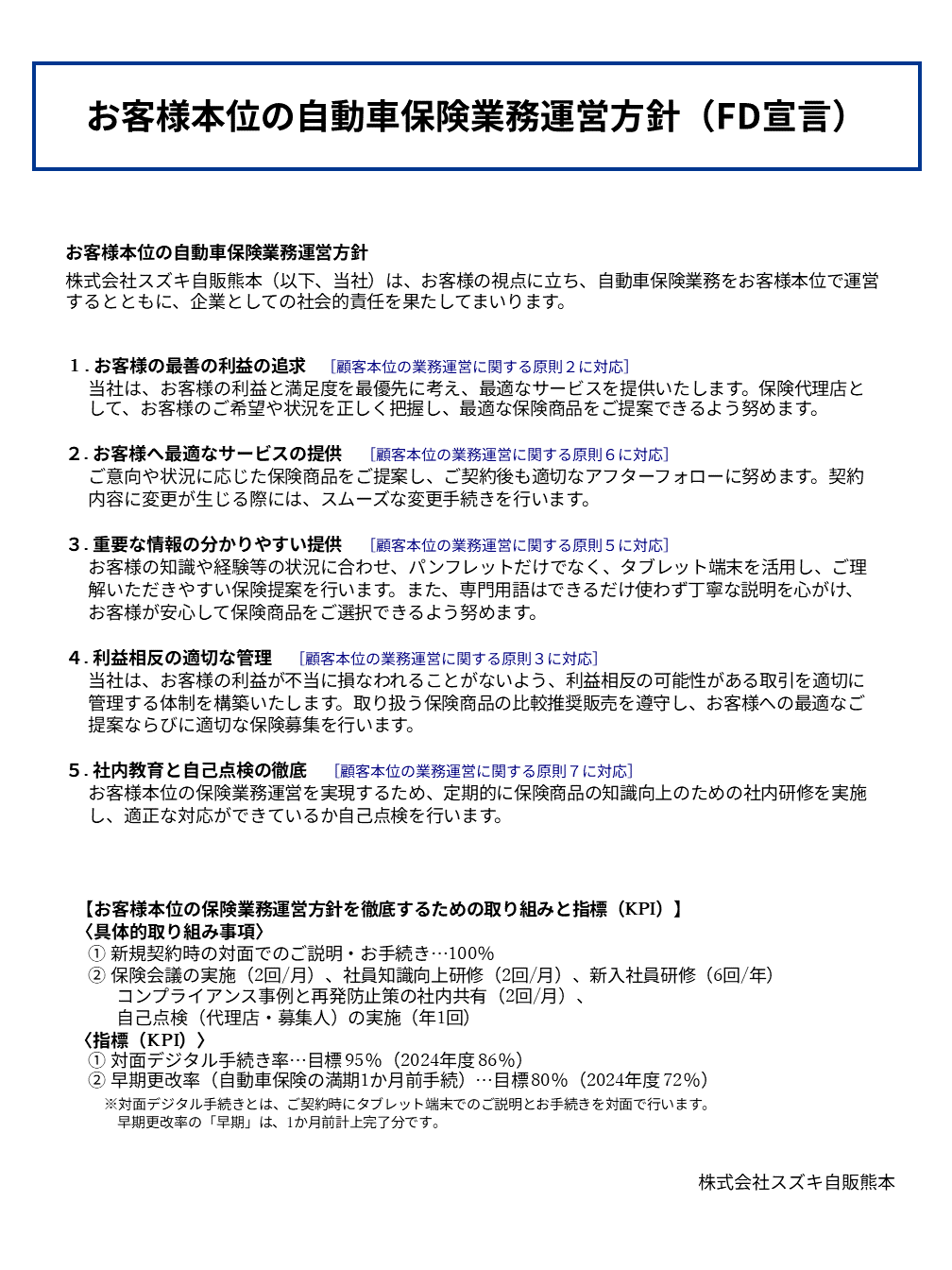 お客様本位の自動車保険業務運営方針(FD宣言)