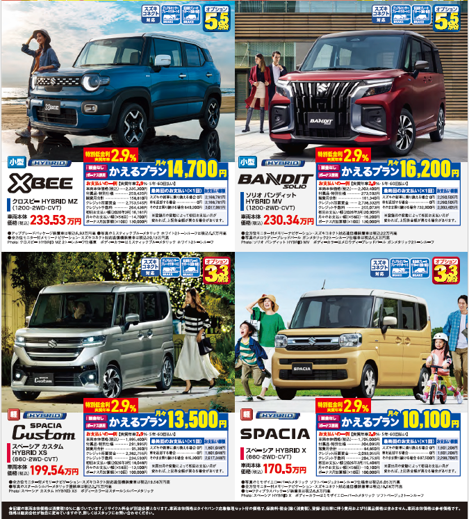 小型車 5.5万円 スズキ純正オプションプレゼント