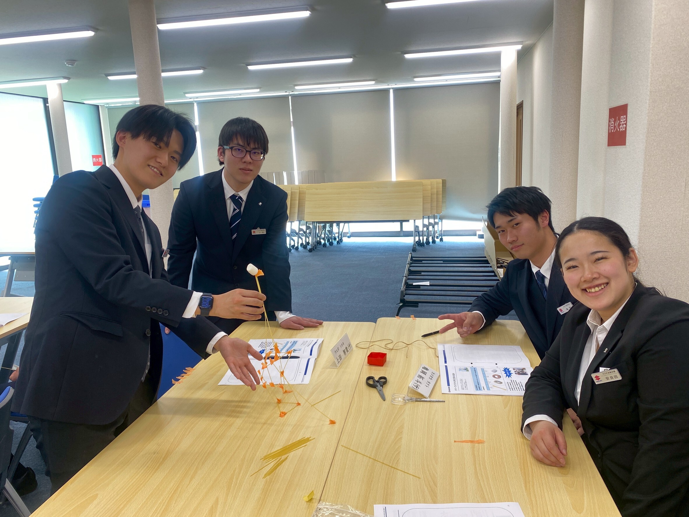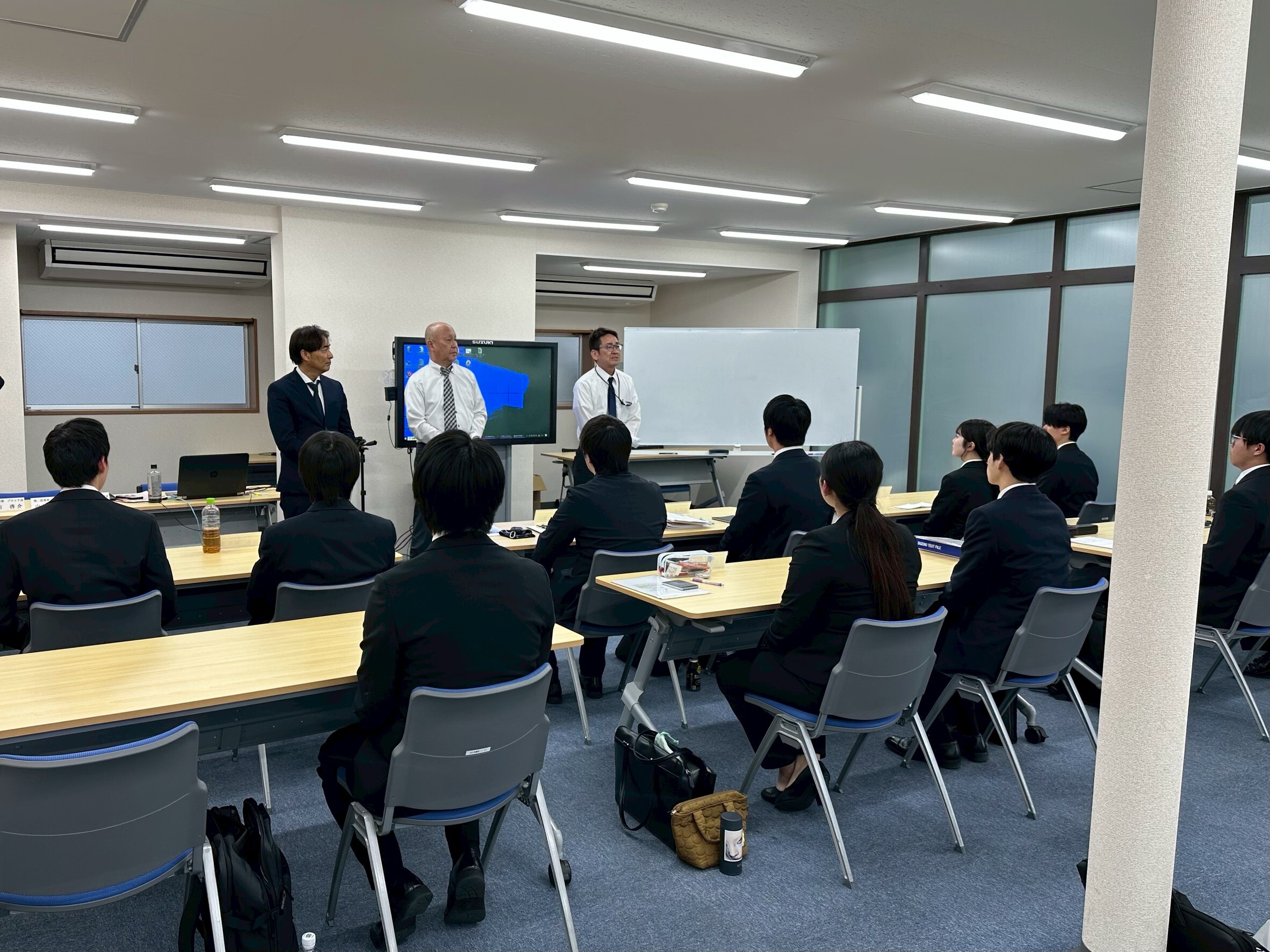 新入社員は自動車やスズキの歴史から、ビジネスマナーなどしっかり学んでおります