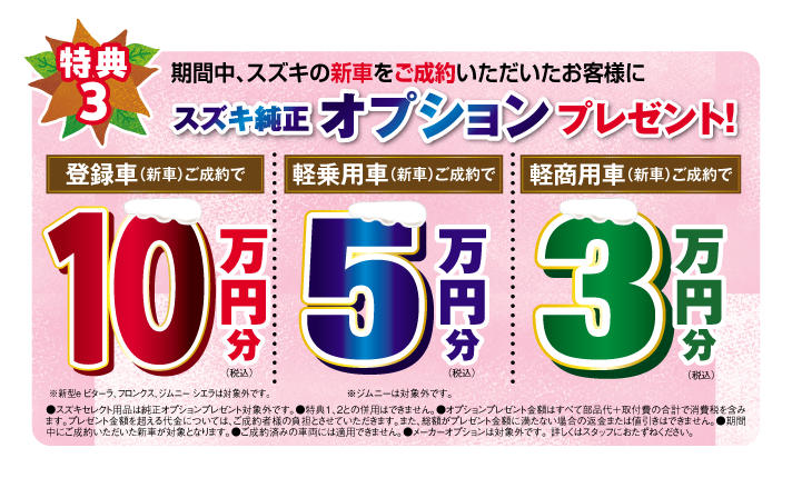 純正オプションプレゼントの金額もいつもより増額となっております