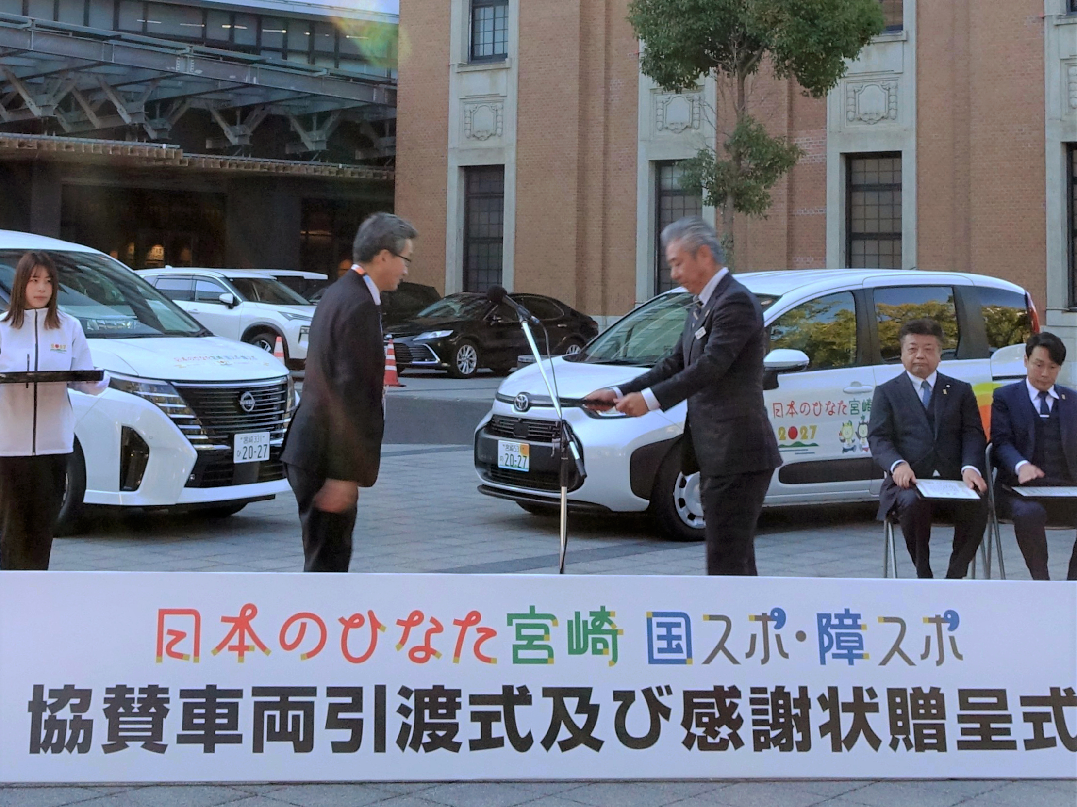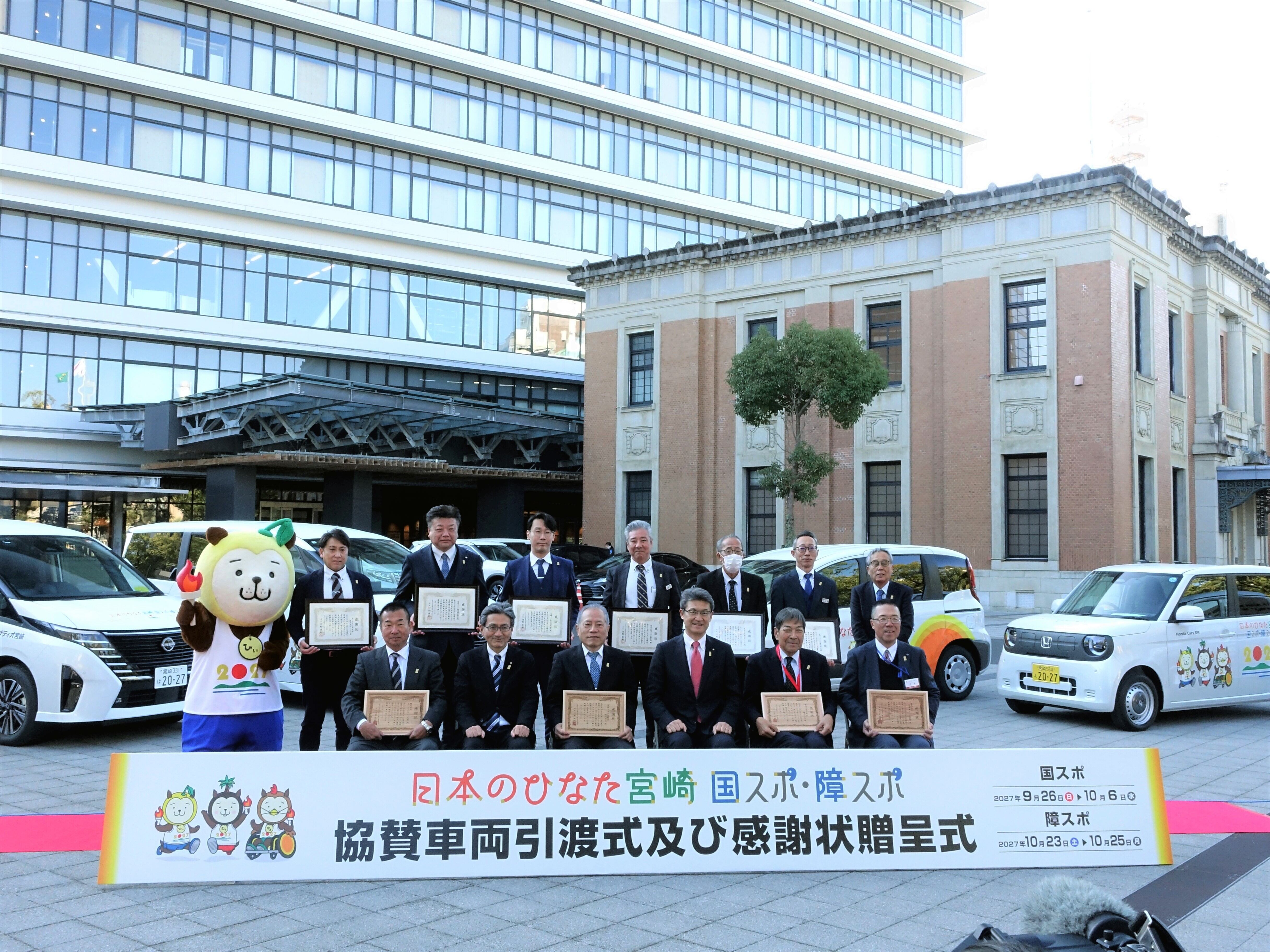 先日、「日本のひなた宮崎 国スポ・障スポ 協賛車両引渡式 及び 感謝状贈呈式」に出席してきました!!!