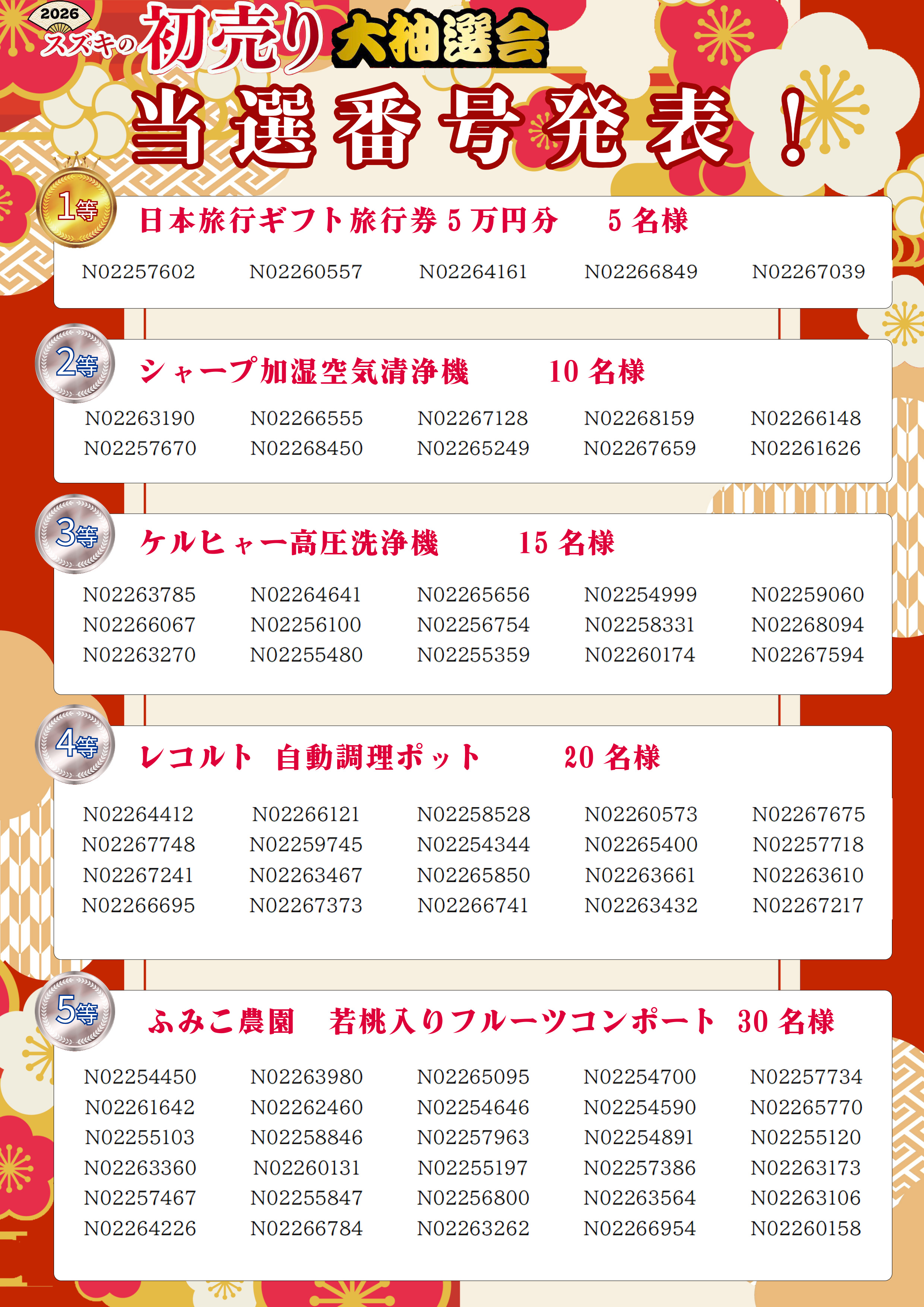 発表!!2026年初売り抽選会 当選番号