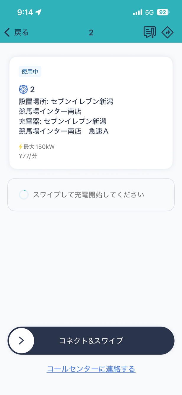 初めての急速充電でしたが、想像以上にカンタンでスムーズ。