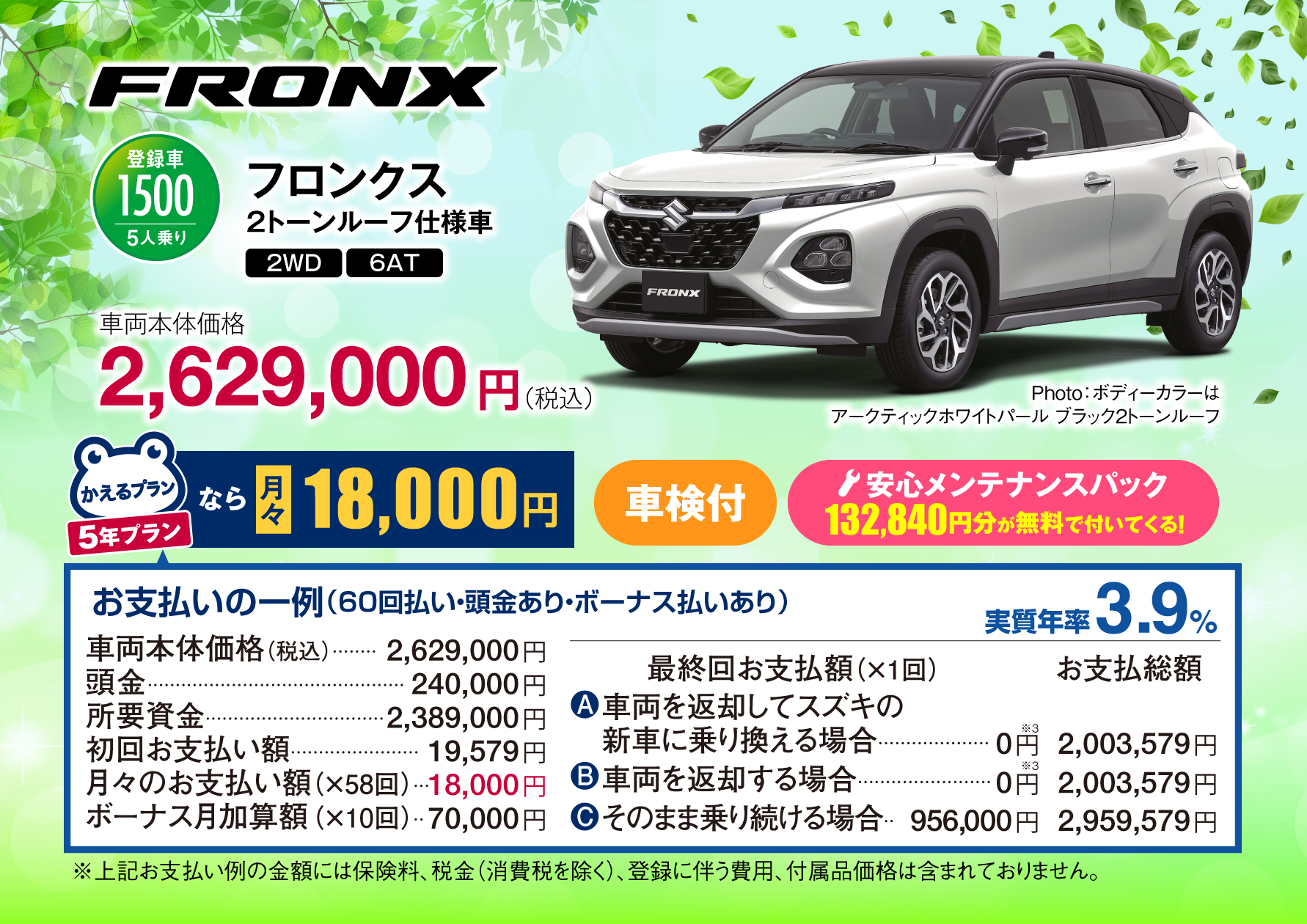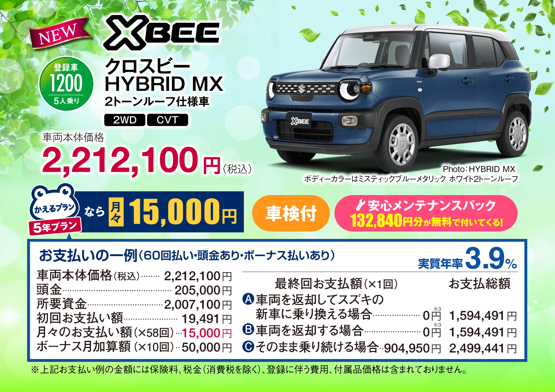 車両本体価格(税抜)の一部をあらかじめ残価として設定し、