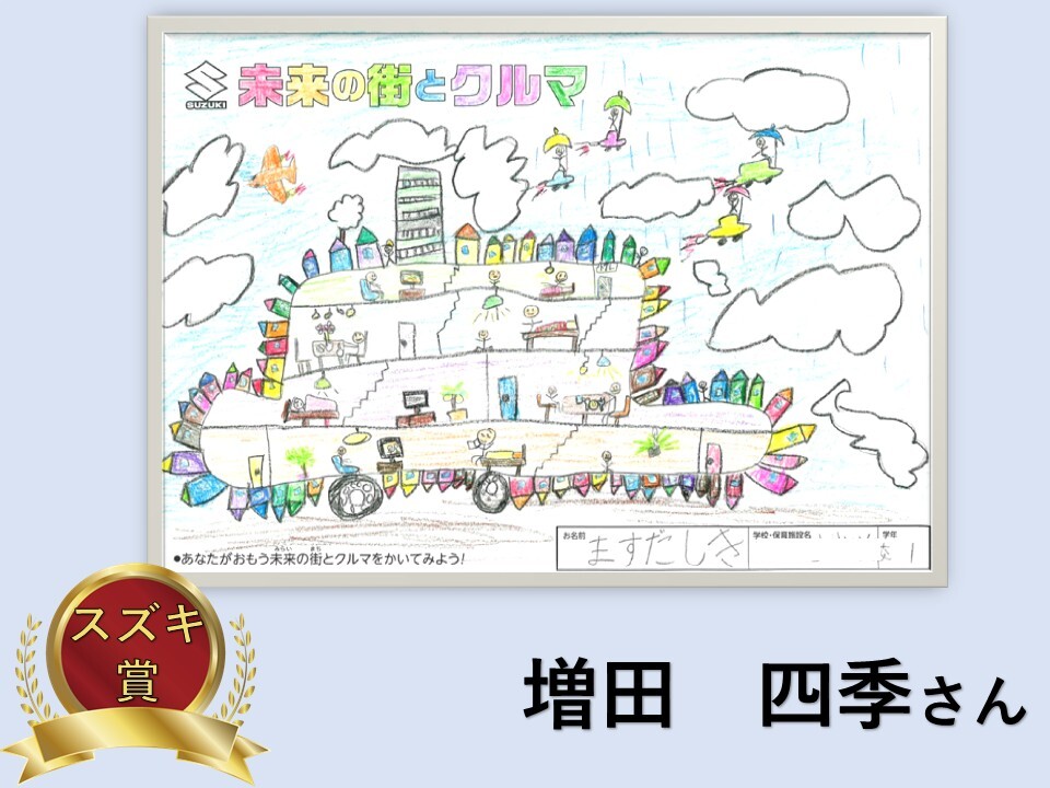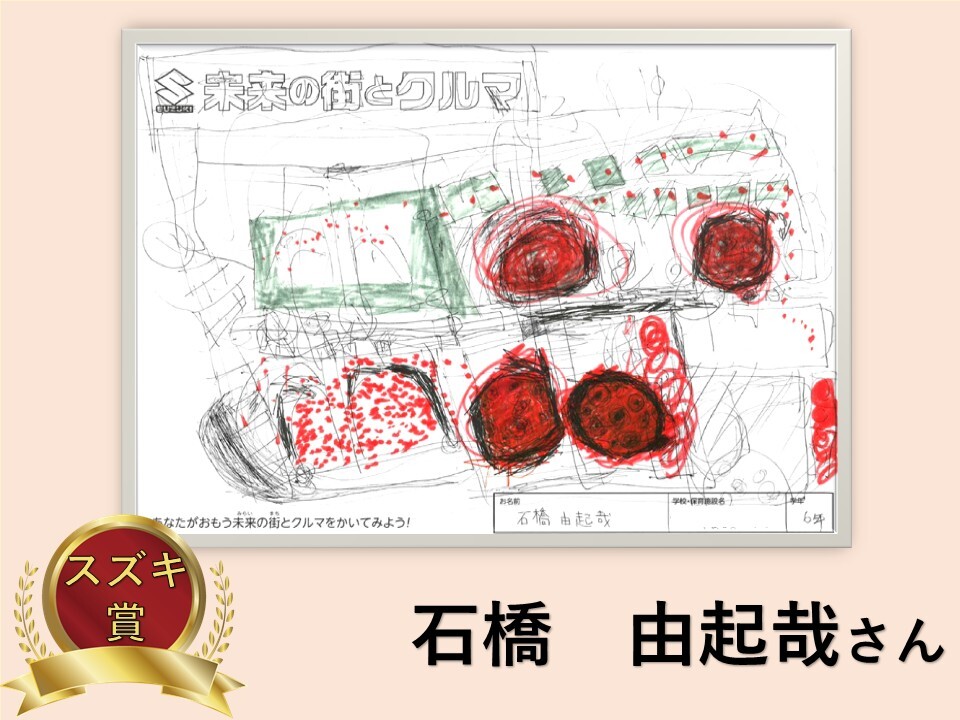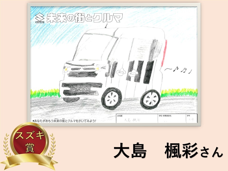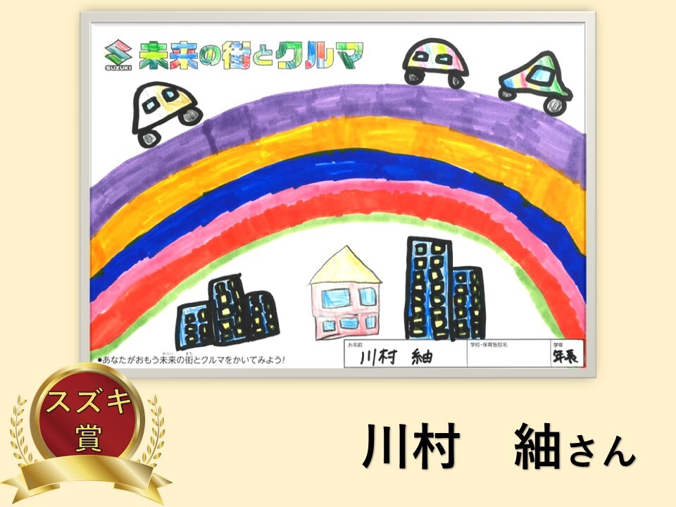 その他 2025.11.15 【受賞作品】スズキ自販滋賀×びわこ放送プレゼンツ 子ども絵画コンクール♪ 皆様こんにちは スズキ自販滋賀です 2025年 【未来の街とクルマ こども絵画コンクール】 たくさんのご応募誠にありがとうございました 約200枚の作品が集まりました! 誠にありがとうございます 今回の受賞作品のご紹介です 【未就学児部門】 【小学1年~3年部門】 【小学4年~6年部門】 表彰式は 2025年11月22日(土)12:00から!! 新しいアリーナ大津店にて開催します 当日は受賞作品を 新店舗に飾ります