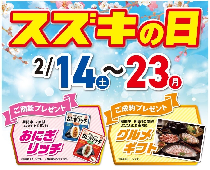 2/14(土)~23(月祝)は「スズキの日」!!