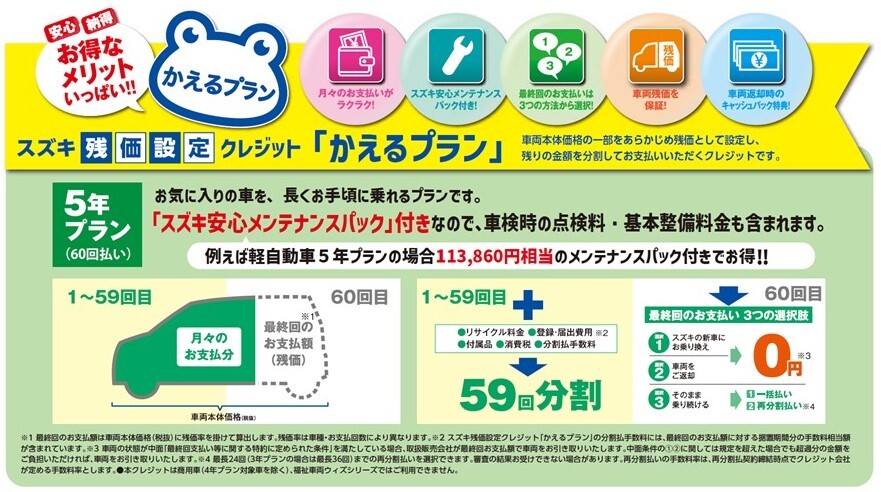 スズキ残価設定クレジット「かえるプラン」特別キャンペーン のご案内