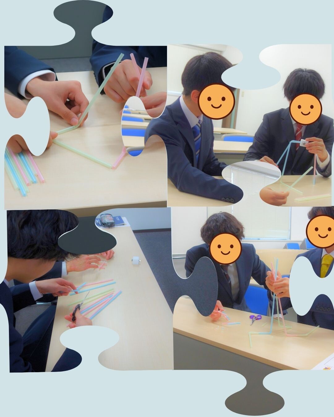 ストロータワーでは、チームで相談しながらタワー作りに挑戦。