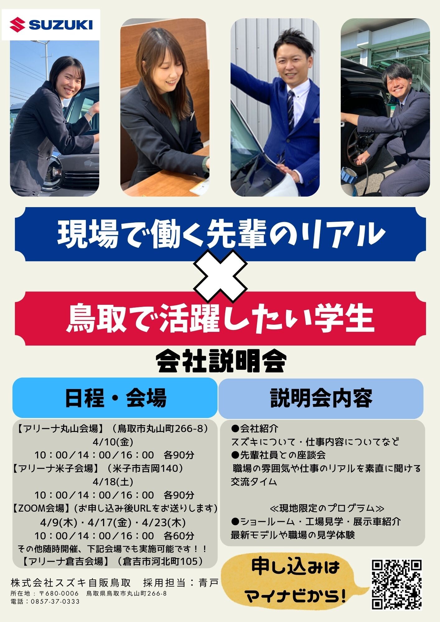 株式会社スズキ自販鳥取では、学生の皆さんを対象に、会社説明会を開催しています。