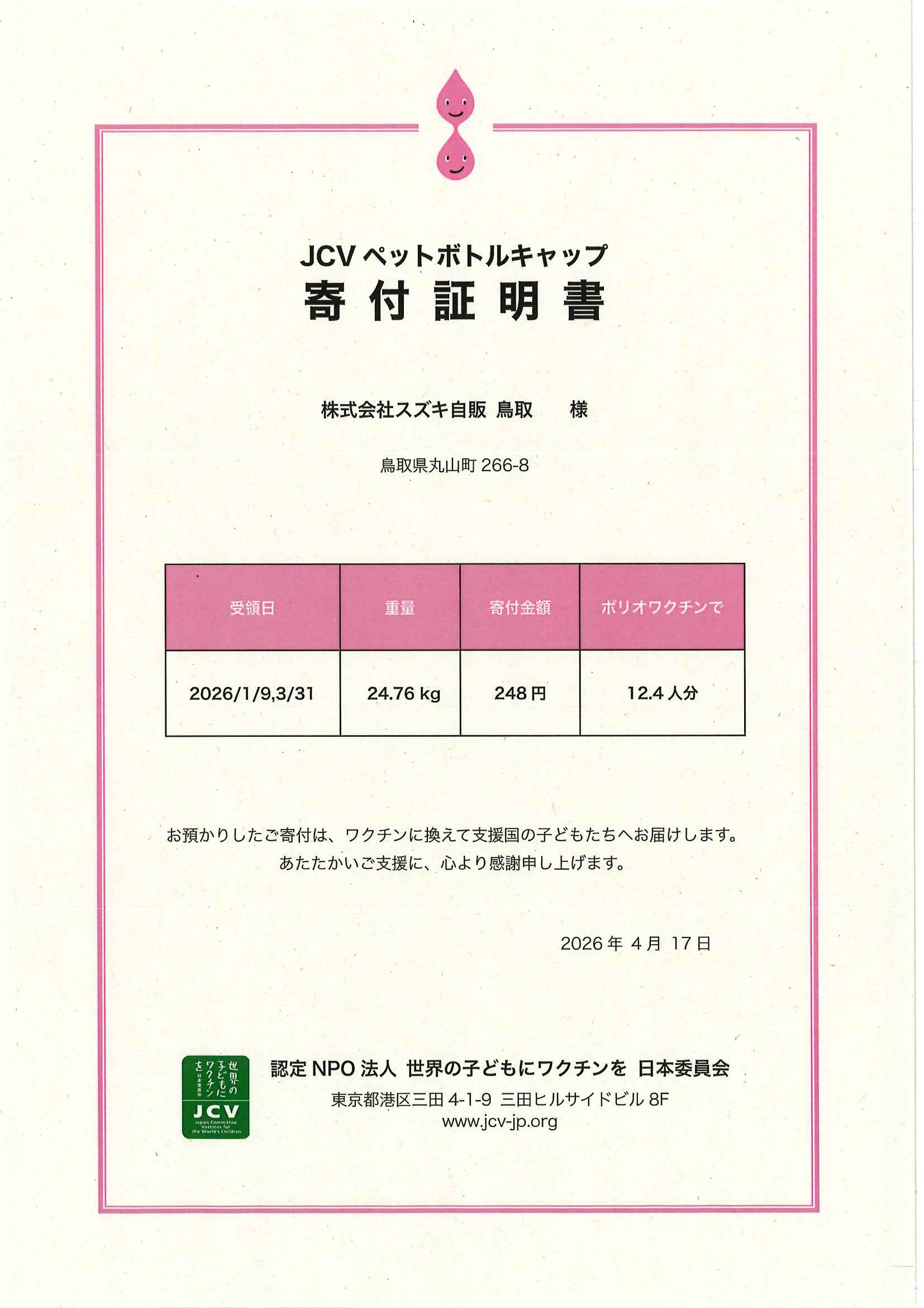 ペットボトルキャップ回収で、ポリオワクチン支援をしています