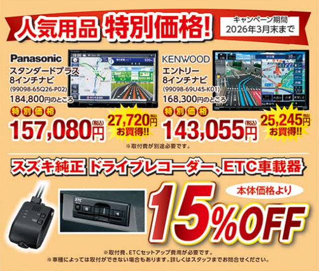 さらに、ナビゲーションやドライブレコーダー、ETCも特別価格も