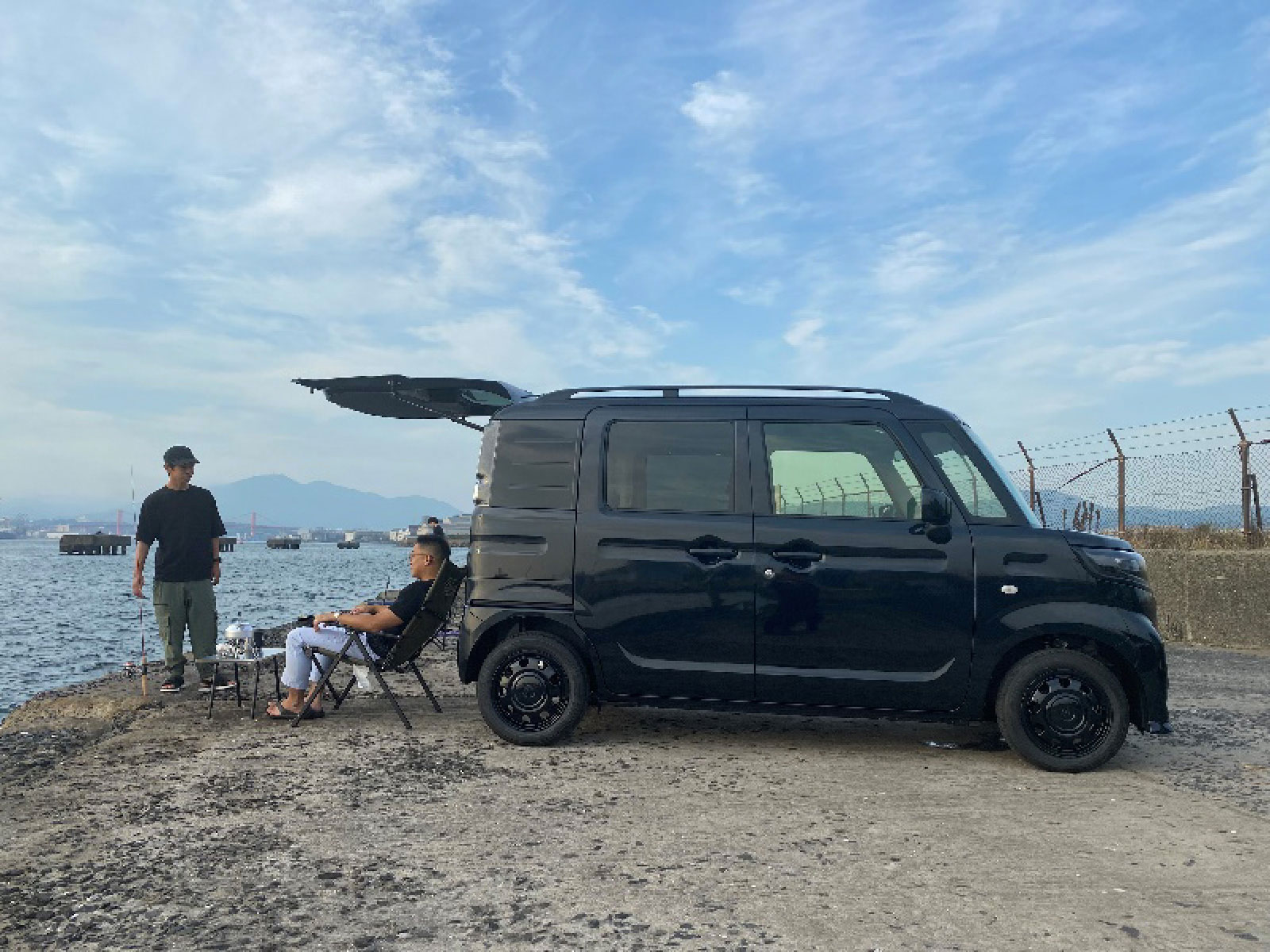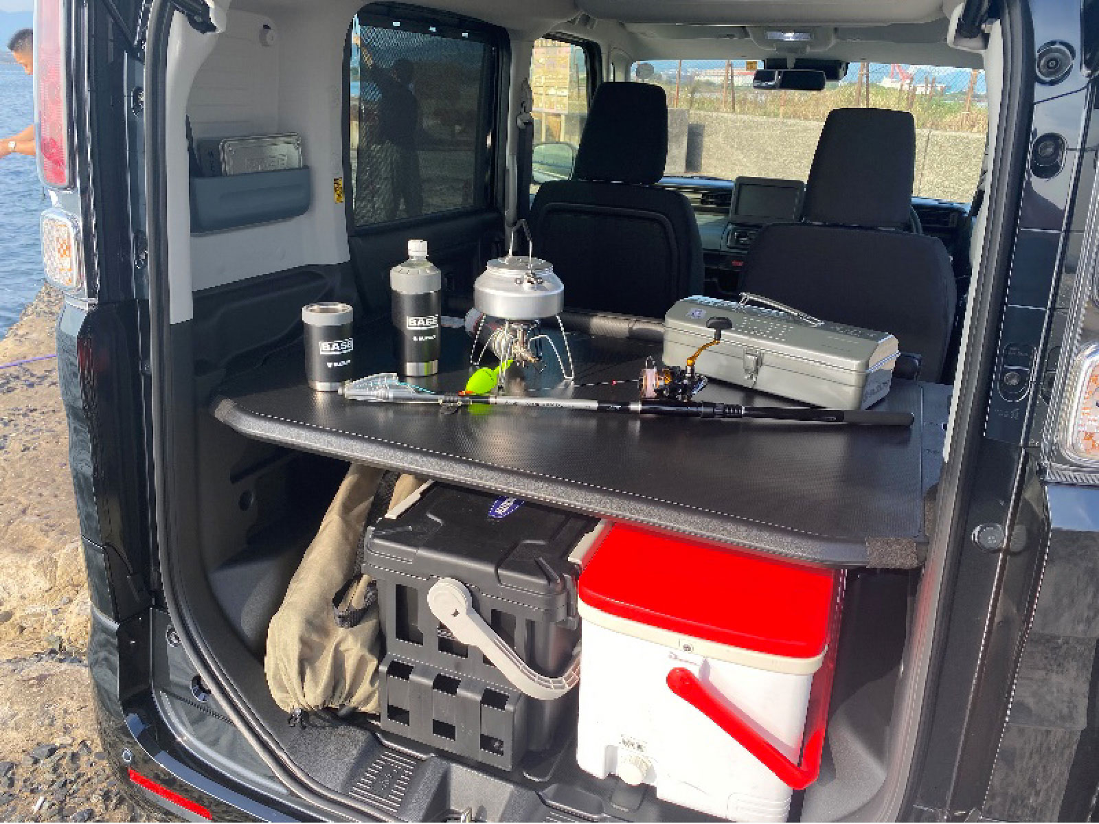 アリーナ八幡中央 店長 おく アリーナ八幡中央 はしだ・おにづか・にしはら BASE×FISHING 北九州市若松区響町の北九州港にある軍艦防波堤。 北九州の工場地帯を眺めながら釣りができます。 ※写真中の小物は、撮影のための小道具です。 収納したままマルチボードで仕掛け作成 道具を出す前にマルチボードで仕掛けを作りながら楽し事ができます。 ※マルチボード耐荷重:最大12kg(上段モード、停車時のみ) ※マルチボードを上段モードにて走行する際は、付属のマルチボード固定用ネットを使用してください。 ※掲載の販売会社装着アクセサリーは別売りとなります。 ※写真中の小物は、撮影のための小道具です。走行中は、荷物が移動し、運転の支障とならないようしっかりと固定または収納してください。 BASE専用のおしゃれな工具箱 山形の工具箱は大容量で釣り具も収納可能。 トランク型の工具箱には仕掛けを入れるのにピッタリ! ※マルチボード耐荷重:最大12kg(上段モード、停車時のみ) ※マルチボードを上段モードにて走行する際は、付属のマルチボード固定用ネットを使用してください。 ※掲載の販売会社装着アクセサリーは別売りとなります。 ※写真中の小物は、撮影のための小道具です。走行中は、荷物が移動し、運転の支障とならないようしっかりと固定または収納してください。 BASEのロゴ入りランタンとサーモタンブラー 夜はベースのロゴ入りランタンが手元を照らしてくれます。 サーモタンブラーには500mlのペットボトルを格納し保冷保温可能。 ※掲載の販売会社装着アクセサリーは別売りとなります。 ※写真中の小物は、撮影のための小道具です。走行中は、荷物が移動し、運転の支障とならないようしっかりと固定または収納してください。 北九州の工場地帯を前に釣り 海の向かいは北九州を代表する工業地帯で夜は夜景も楽しめる絶景ポイント。 釣り場としても一級ポイントとして知られています。 魚種も豊富でサビキ釣りから本格的な釣りまで楽しめます。 ※写真中の小物は、撮影のための小道具です。 釣行前の作戦会議 大きな跳ね上げ式バックドアは雨の日でも釣り人を雨から守ってくれます。 テーブルや椅子を準備すればファミリーフィッシングにも対応可能。 ※写真中の小物は、撮影のための小道具です。 BASEの後方に腰かけて釣行 バックドアを開ければ夏場の強い日差しからも釣り人を守ってくれ、のんびりとした時間を満喫できます。 ※写真中の小物は、撮影のための小道具です。 BASEと一緒にベストショット 自分だけの秘密基地と一緒に右手には竿を持ち本日の釣行に心躍る。 ※写真中の小物は、撮影のための小道具です。