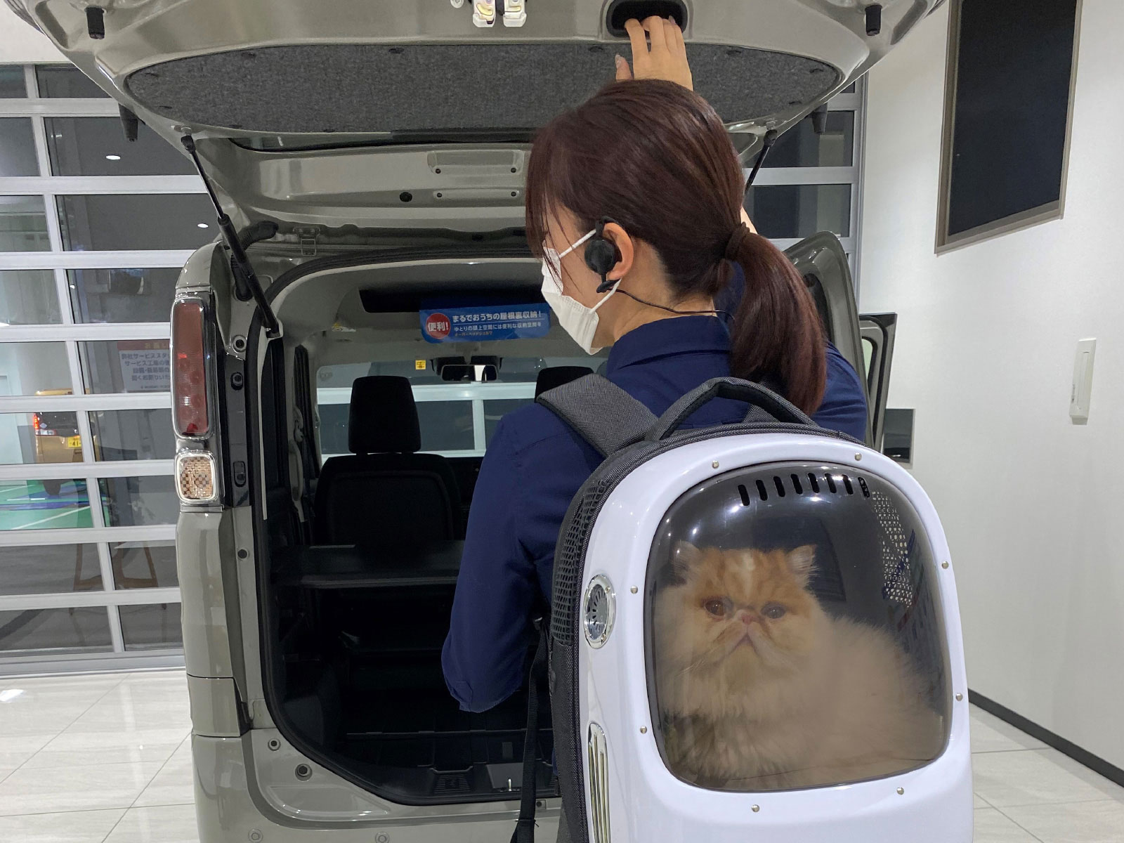 アリーナ博多 いその・はやし 本社 裏方の人 BASEでドッグラン 休日はペットを乗せて、荷物を積んで。 ドッグランに遊びに行くのはBASEにおまかせ!! ドッグランで遊んだ後は室内で休憩 防汚タイプラゲッジフロアを採用していますので、遊んだまま乗り込んでも大丈夫! 床面についた泥汚れなどはサッと一拭きでキレイになります。 大型犬用のクレート・ケージも楽々積載 マルチボードを前後分割モードで使用すると、クレートやケージを安全に載せるスペースが生まれます。 805mm×1,220mmの広い空間は市販の大きめのクレートやケージが積載できます。 ※最大寸法 ※写真中の小物は、撮影のための小道具です。走行中は、荷物が移動し、運転の支障とならないようしっかりと固定または収納してください。 助手席シートバックも防汚仕様 助手席の背もたれを前に倒してテーブルとして使用できます。 防汚仕様だから汚れもカンタンに拭き取り可能です。 BASEの広さにネコも大喜び 小さなキャリーバッグでお出かだと広いスペースが確保でき、ペットもゆっくりとできます。 ※移動時はキャリーに入れ、キャリーを固定してください。 ※写真中の小物は、撮影のための小道具です。走行中は、荷物が移動し、運転の支障とならないようしっかりと固定または収納してください。 使いやすい荷室床面地上高 荷室床面地上高は540mmと高すぎず、安全にペットの乗せ下ろしができます。 ペットとBASEでおでかけ♪ BASEならペットとのお出かけが楽しくなります。 ペット同伴可能なカフェを探してお出かけしてみてはいかがですか? ※写真中の小物は、撮影のための小道具です。 マルチボード上段モードでペットと遊ぼう 小型~中型のペットならマルチボード上段モードで一緒に食事したり遊んだりできます。 ペットとの楽しいひと時もBASEは叶えてくれます。 ※マルチボード耐荷重:最大12kg(上段モード、停車時のみ) ※写真中の小物は、撮影のための小道具です。