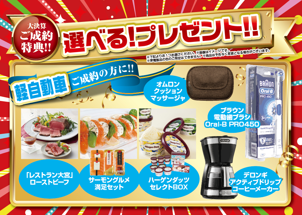 オプションプレゼント金額を超える代金についてはご成約者のご負担とさせていただきます。