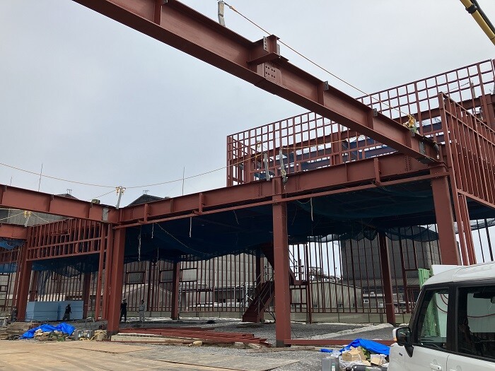 鉄骨をくみ上げております。