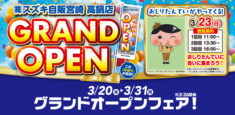 「スズキ自販宮崎 高鍋店グランドオープンフェア」を開催します!