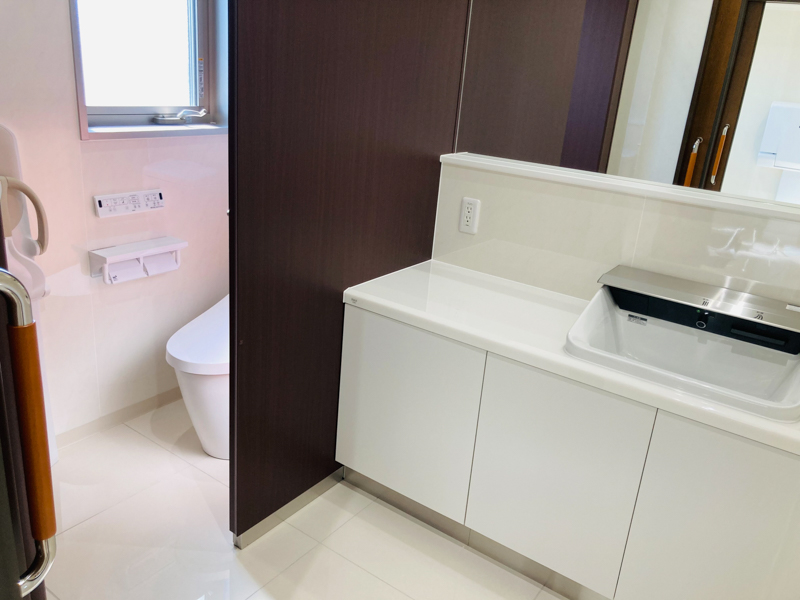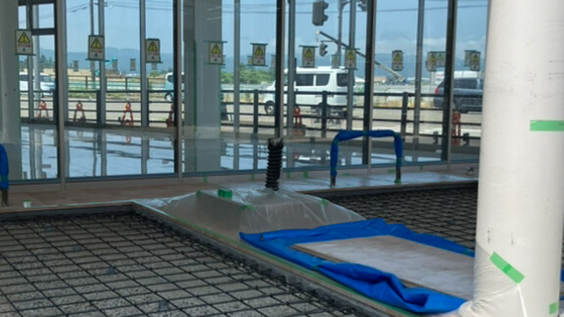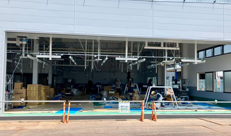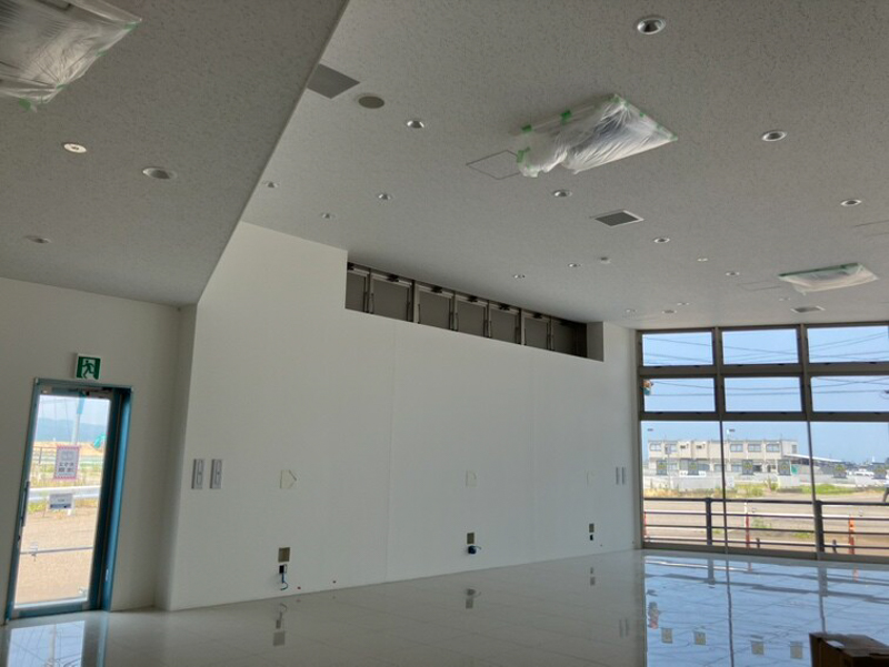 この日、屋内ではお客様用お手洗いの設置作業が進められていました。