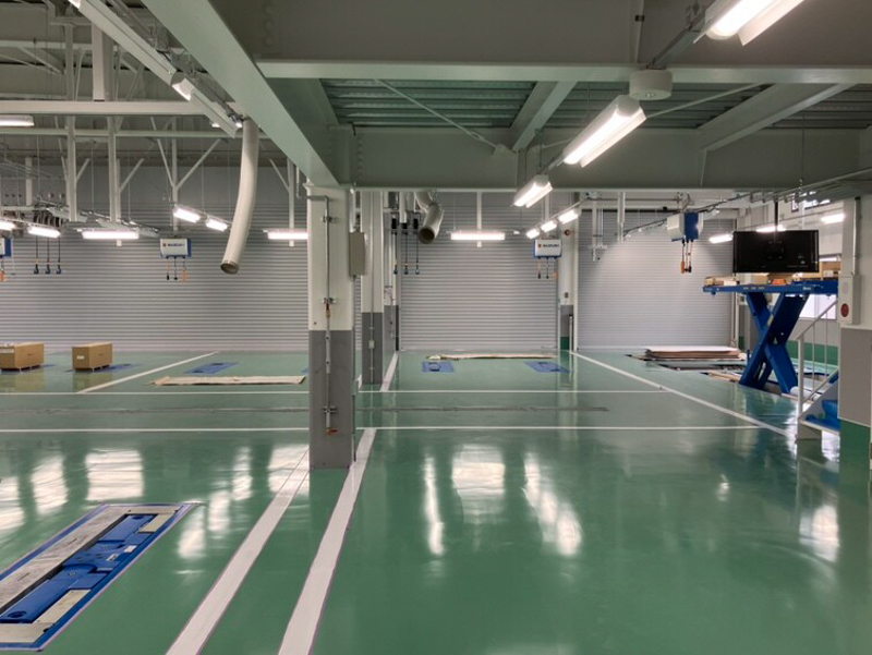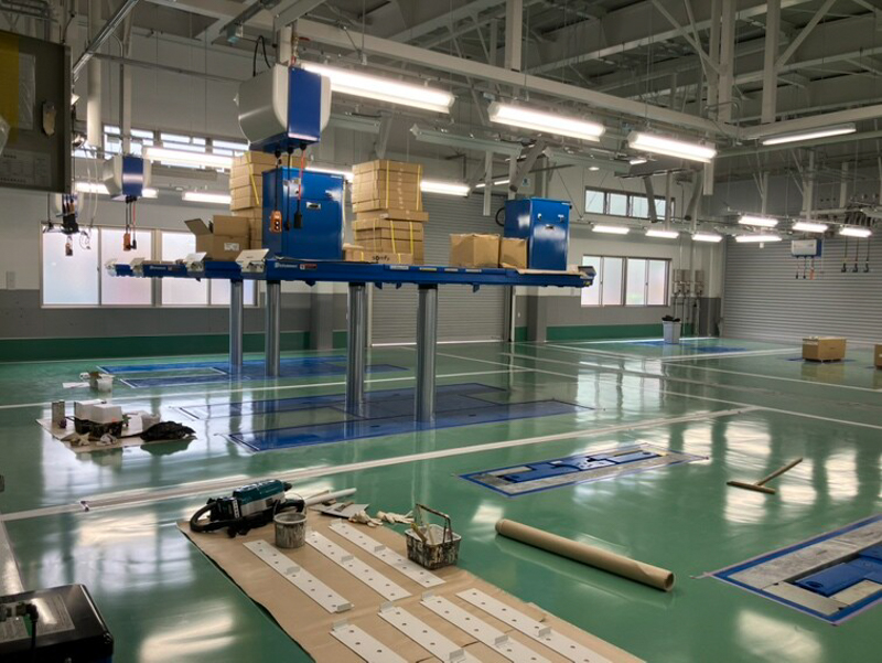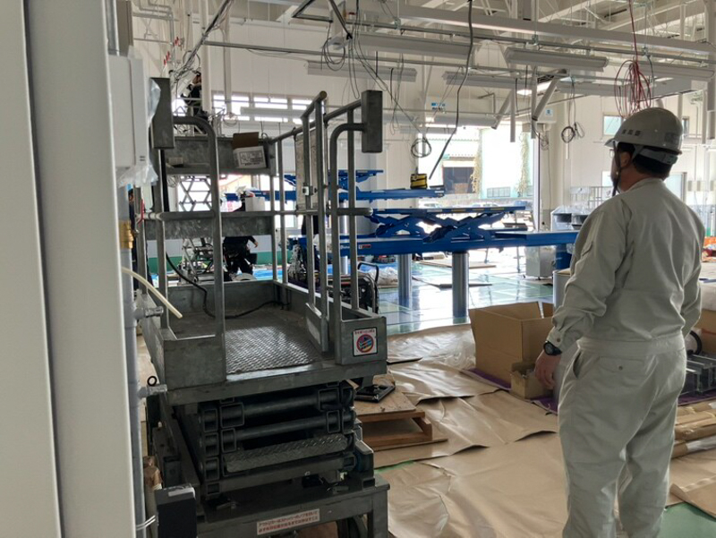 工場は、リフトと照明をつける作業がそれぞれ進んでいました。