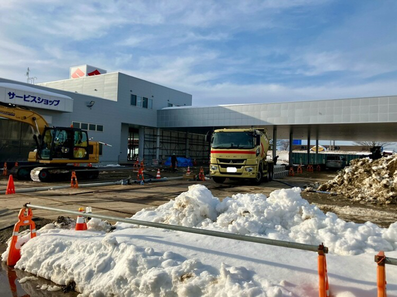 新店舗建設現場も除雪作業中の様子ですが