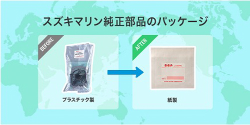- 2020年9月生産よりスズキ船外機用純正部品の包装材の一部をプラスチック製から紙製に変更しました。