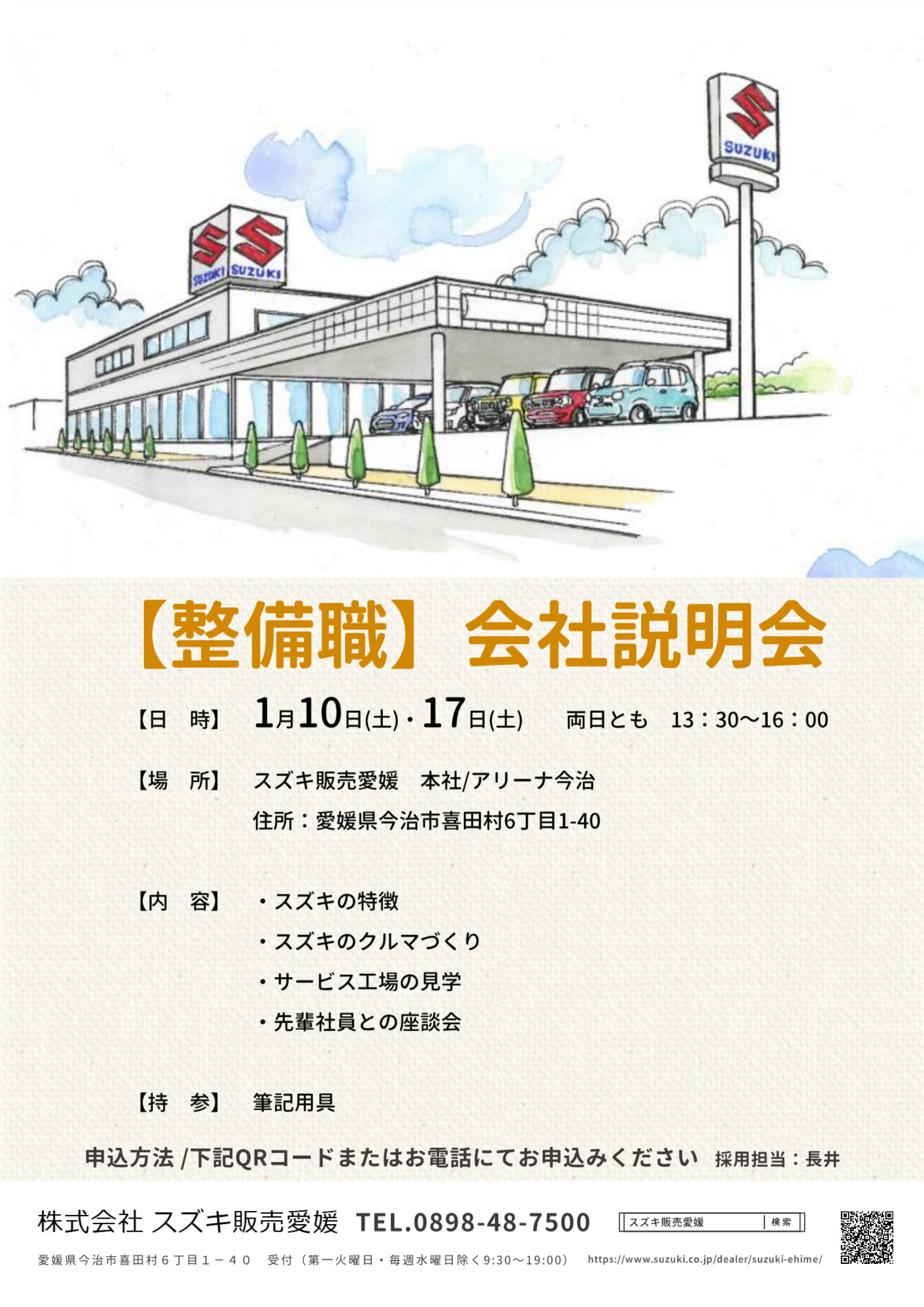 お申込みは、採用担当ナガイまでご連絡いただくか