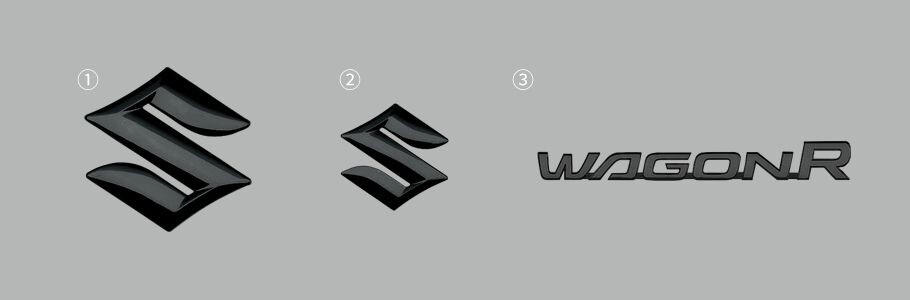 ①フロント用Sエンブレ ②リア用Sエンブレム ③リア用WAGONR