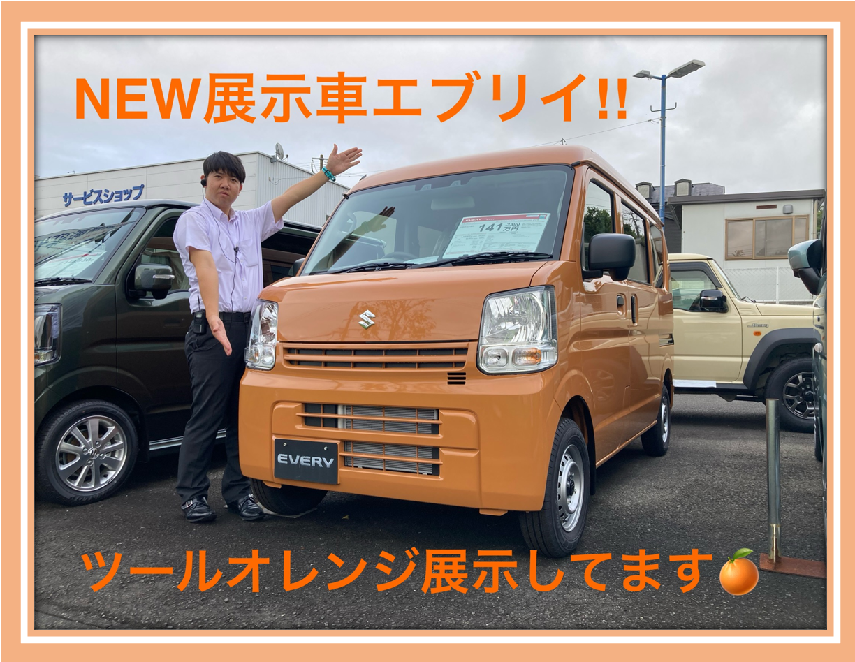 スタッフによるクルマ紹介 2025.09.23 NEW展示車!!オレンジのエブリイ展示してます!! 車名 エブリイ こんにちは!! スズキアリーナ清武店です 本日は新しくお店にやってきた展示車の紹介です!!! その車はなんとエブリイです このエブリイの特徴はなんといってもボディカラーで 新色として採用されたツールオレンジとなっております 他では見ないオレンジが目を引く1台となっております!!! ぜひ清武店で実車をご覧ください!!! 皆様のご来店をお待ちしております!!!!