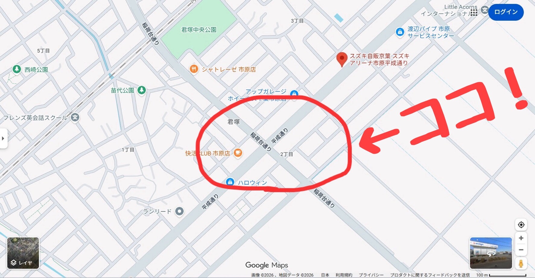 五井方面から店舗にご来店される際に通るこちらの交差点