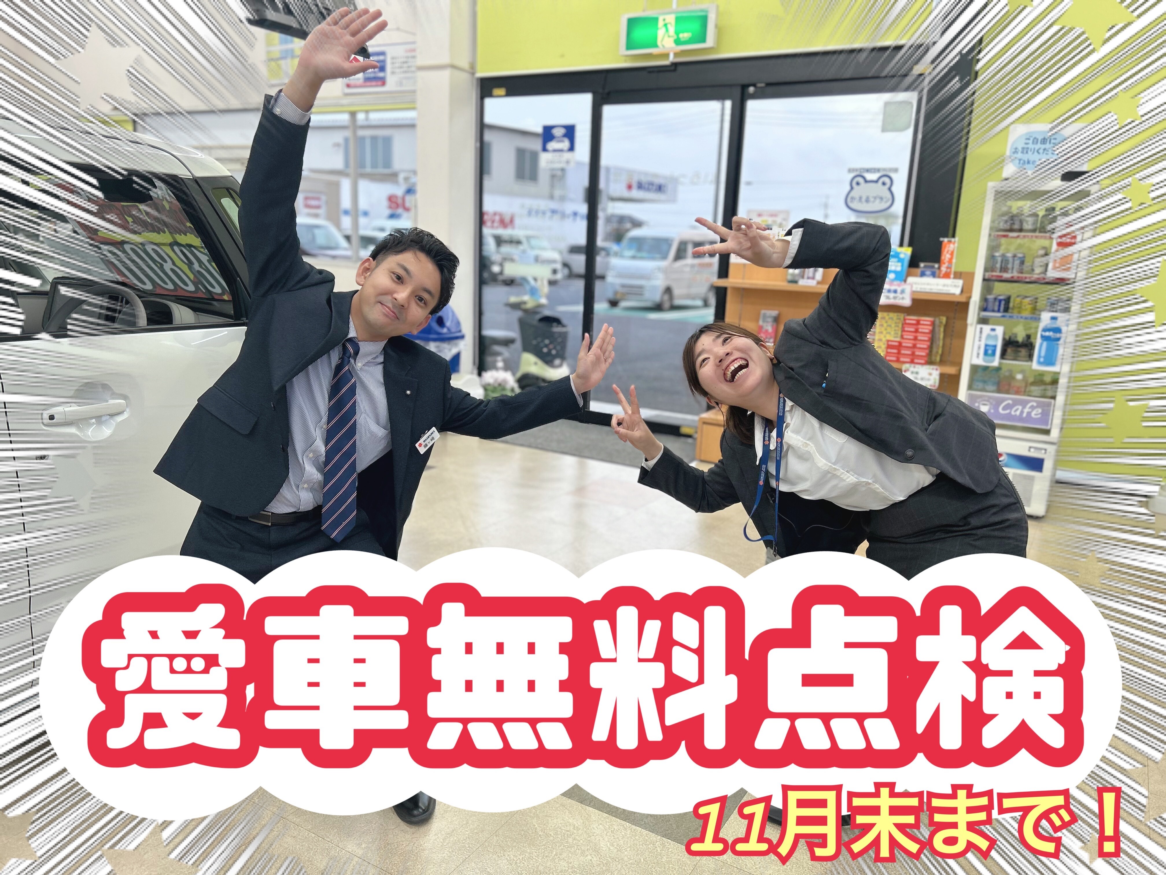 その他 2025.10.13 ★★★まだまだ愛車無料点検ご予約お待ちしてます!★★★ こんにちは 成東店です 10月14日(火)、15日(水)は 定休日です。 新型車誕生フェア ありがとうございました 今回は行けなかったよという方、 次回のイベントでお待ちしております 愛車無料点検 11月末まで実施中です 30~40分程で点検できます ついでに成東店の展示車もご覧になってください 気になるお車がありましたらお見積もりも可能です! 査定も商談もお任せください ぜひこの機会に成東店へお越しくださいませ! 皆さまのご来店を心よりお待ちしております