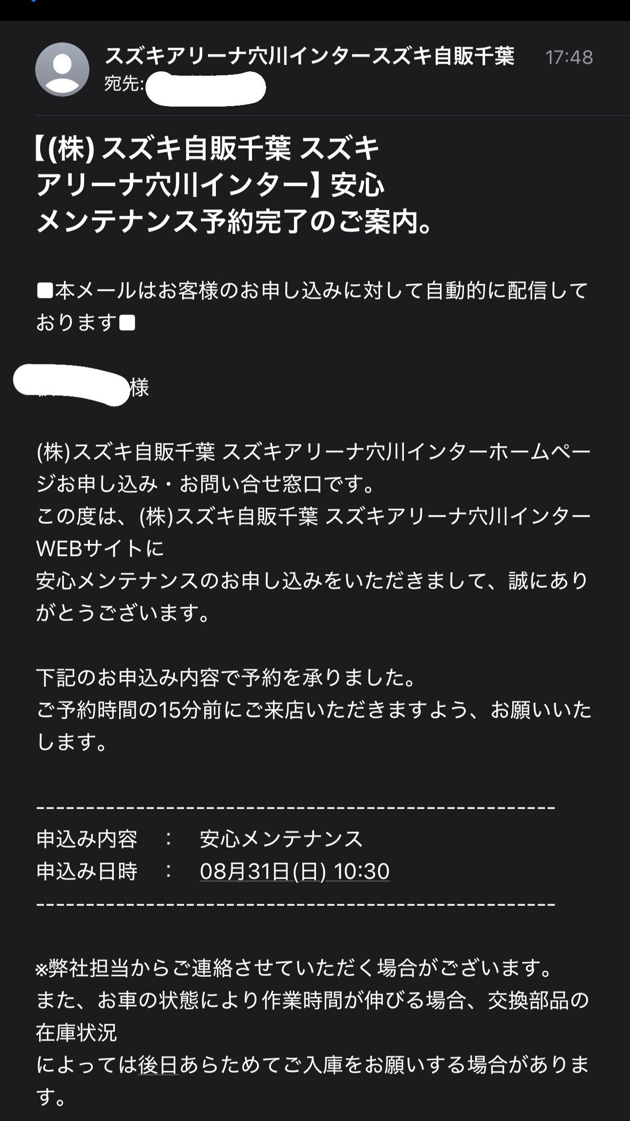 予約完了後、メールもきます