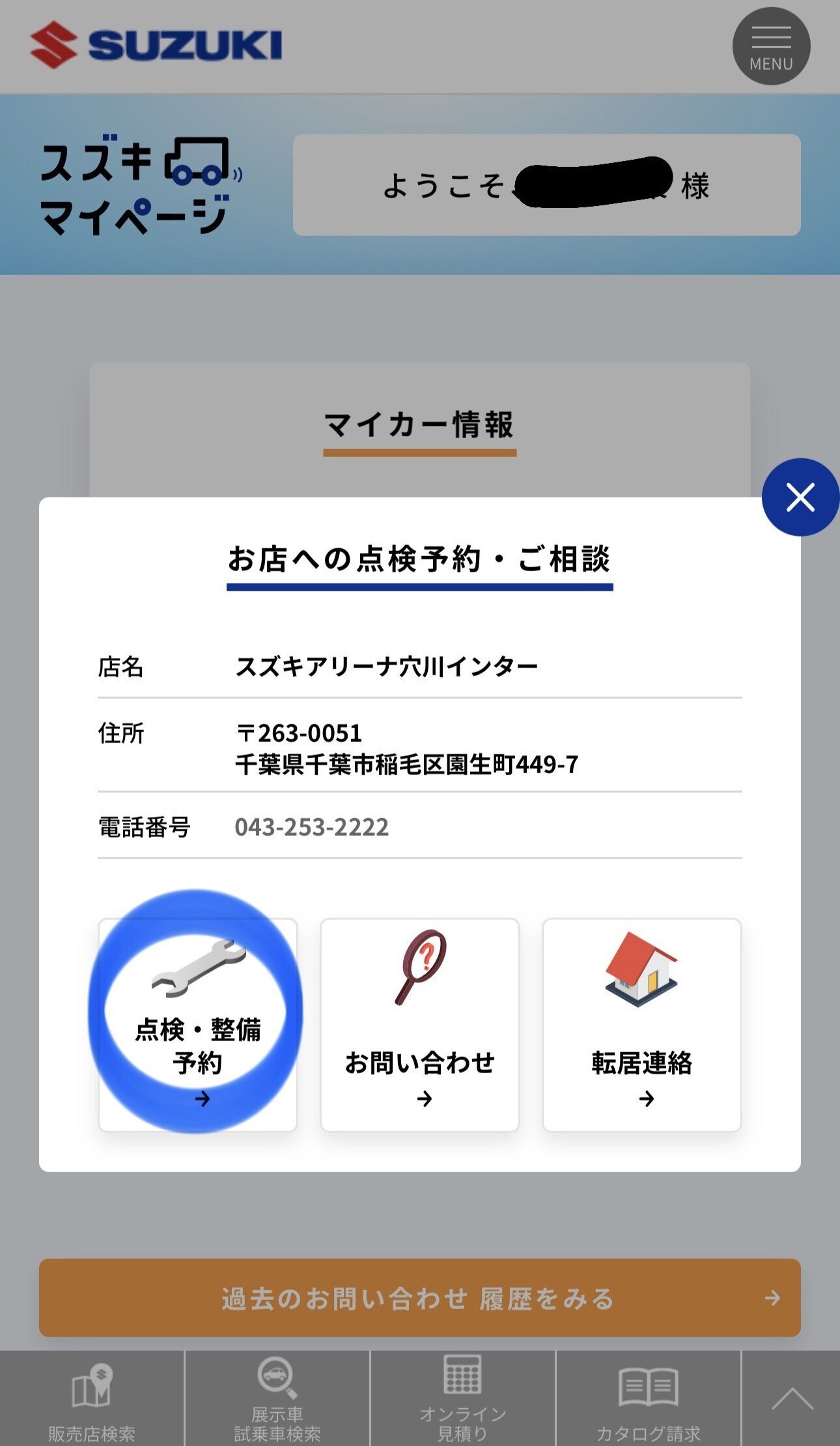 「お店への点検予約・ご相談」を押します